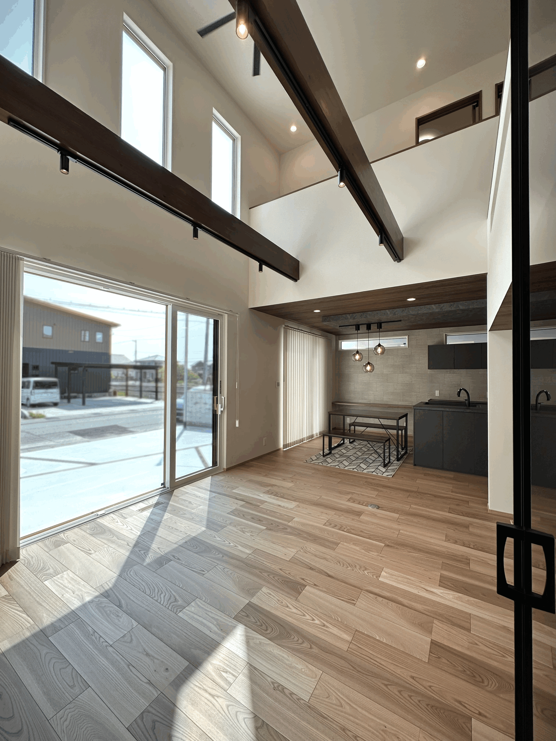二本の化粧梁がアクセントになり空間にメリハリを生み出します