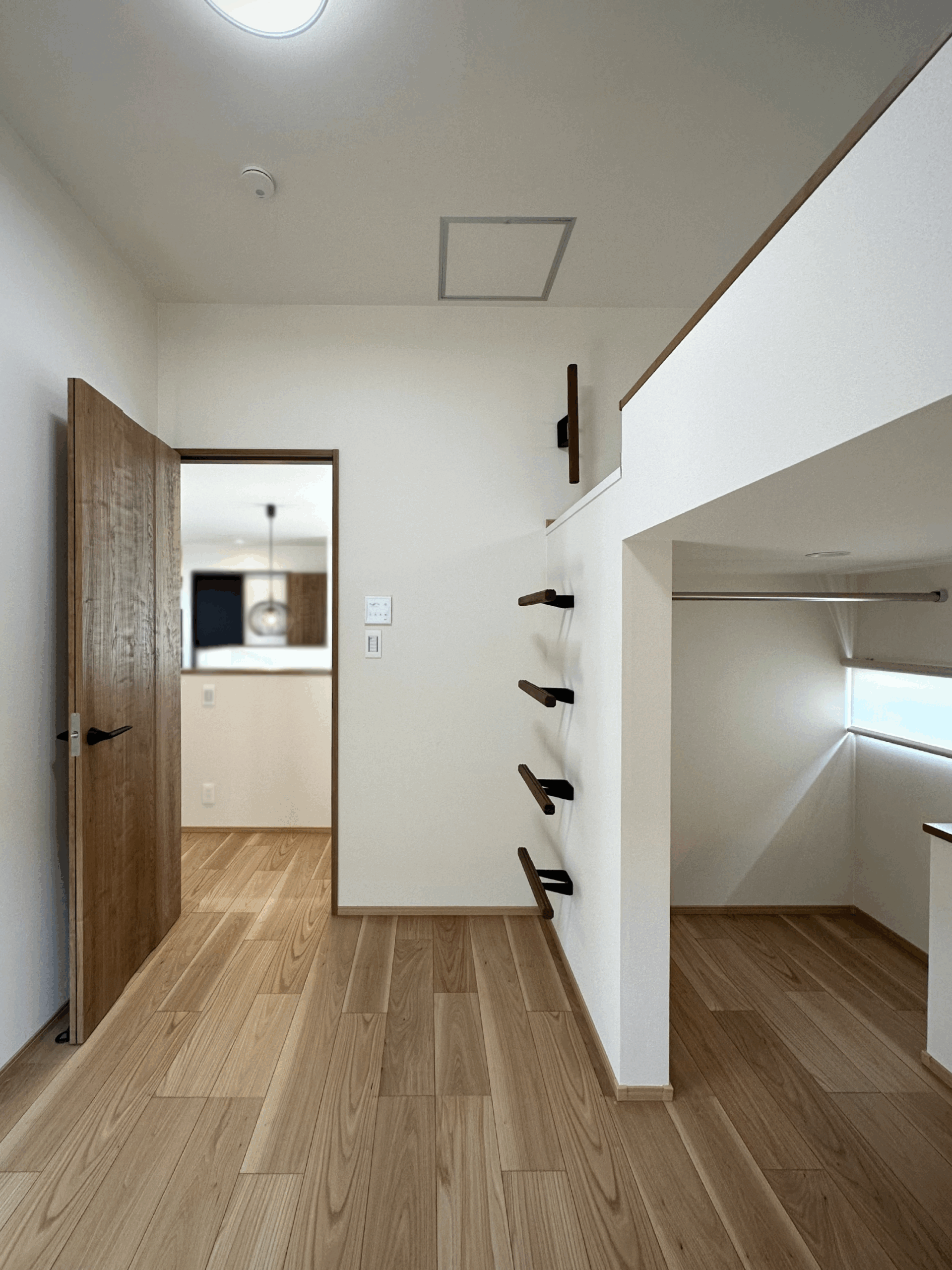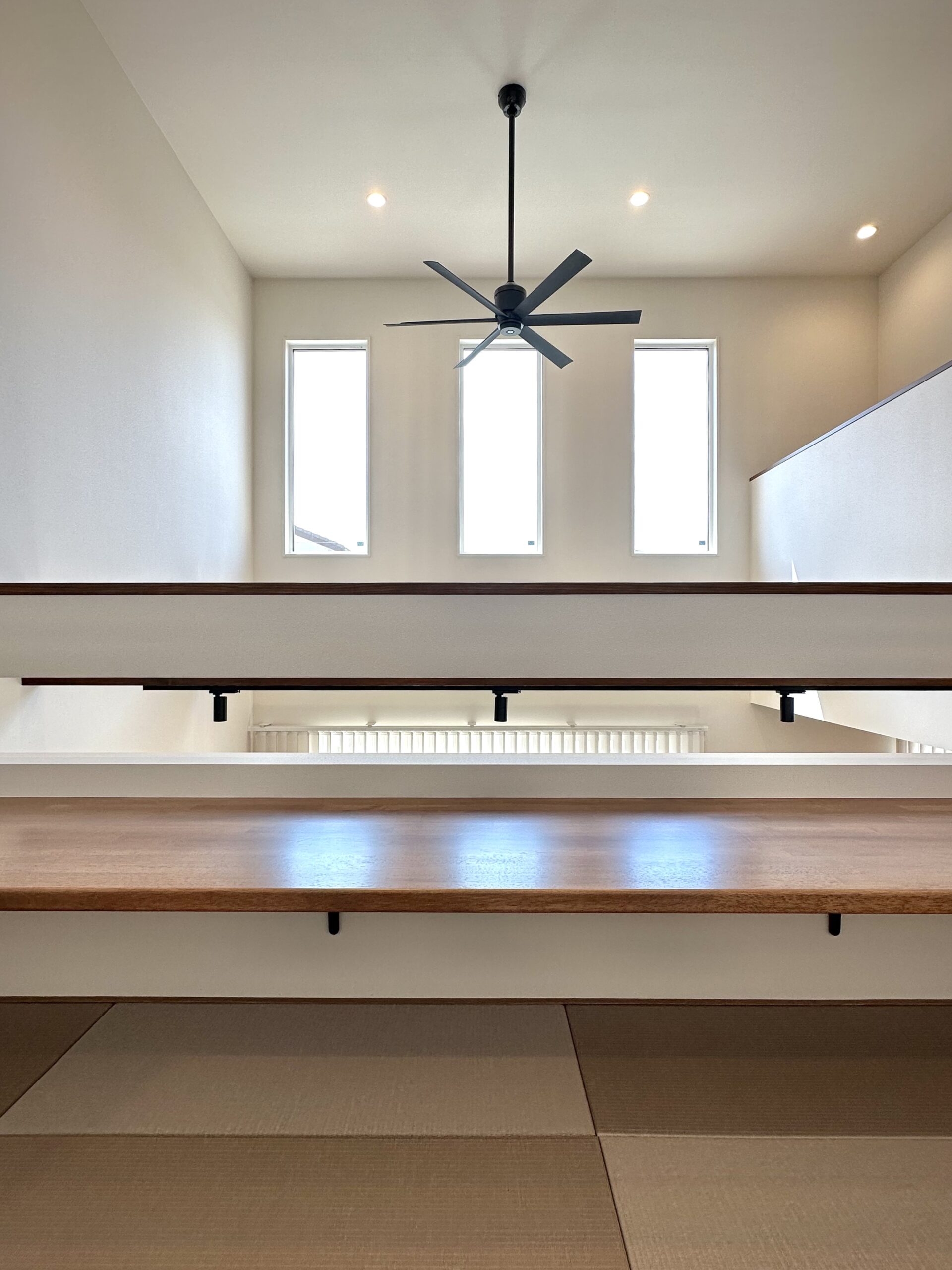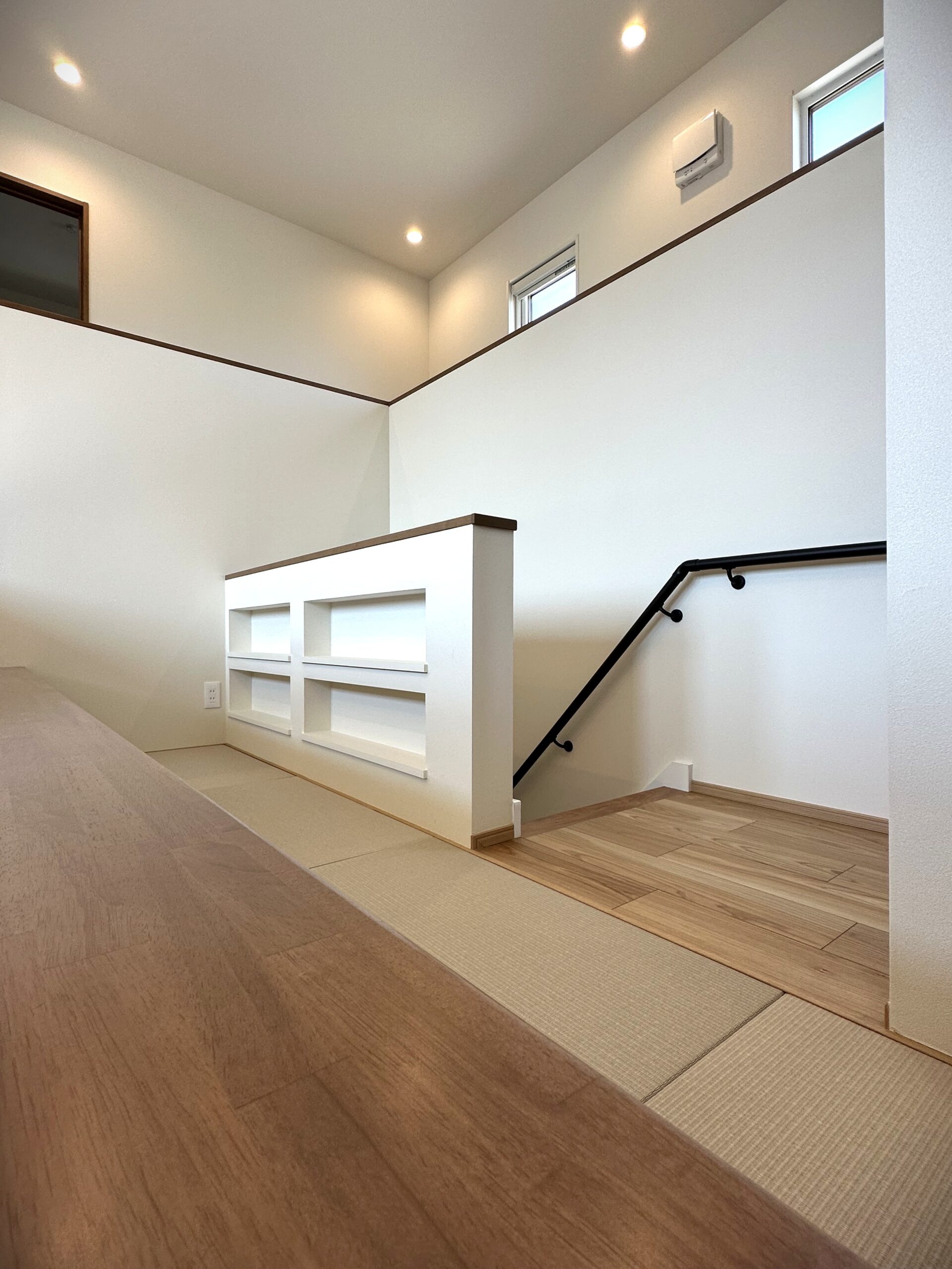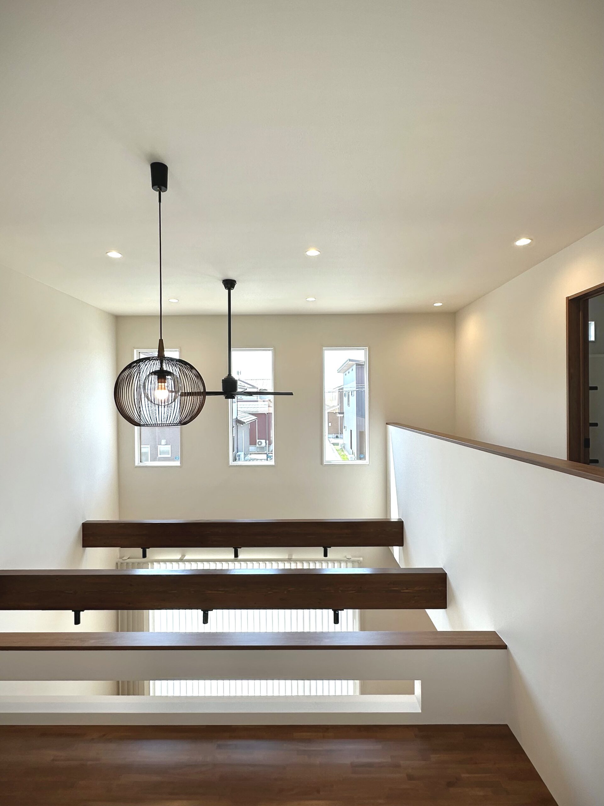 空間に広がりと快適さを与える【スキップフロア】のあるお家。 LDKは吹き抜けで開放感たっぷりで家族の気配を自然に伝えます。 スキップフロアならではの視線の抜けが、限られた空間に想像以上の広がりを創出。 家族がそれぞれの時間を過ごしながらも緩やかに繋がり—— 近すぎず、遠すぎない。 現代の暮らしにふさわしい、理想的な距離間を実現しました。 また、家事の負担を考慮した回遊できる家事動線も叶え日々の生活もストレスフリーに。