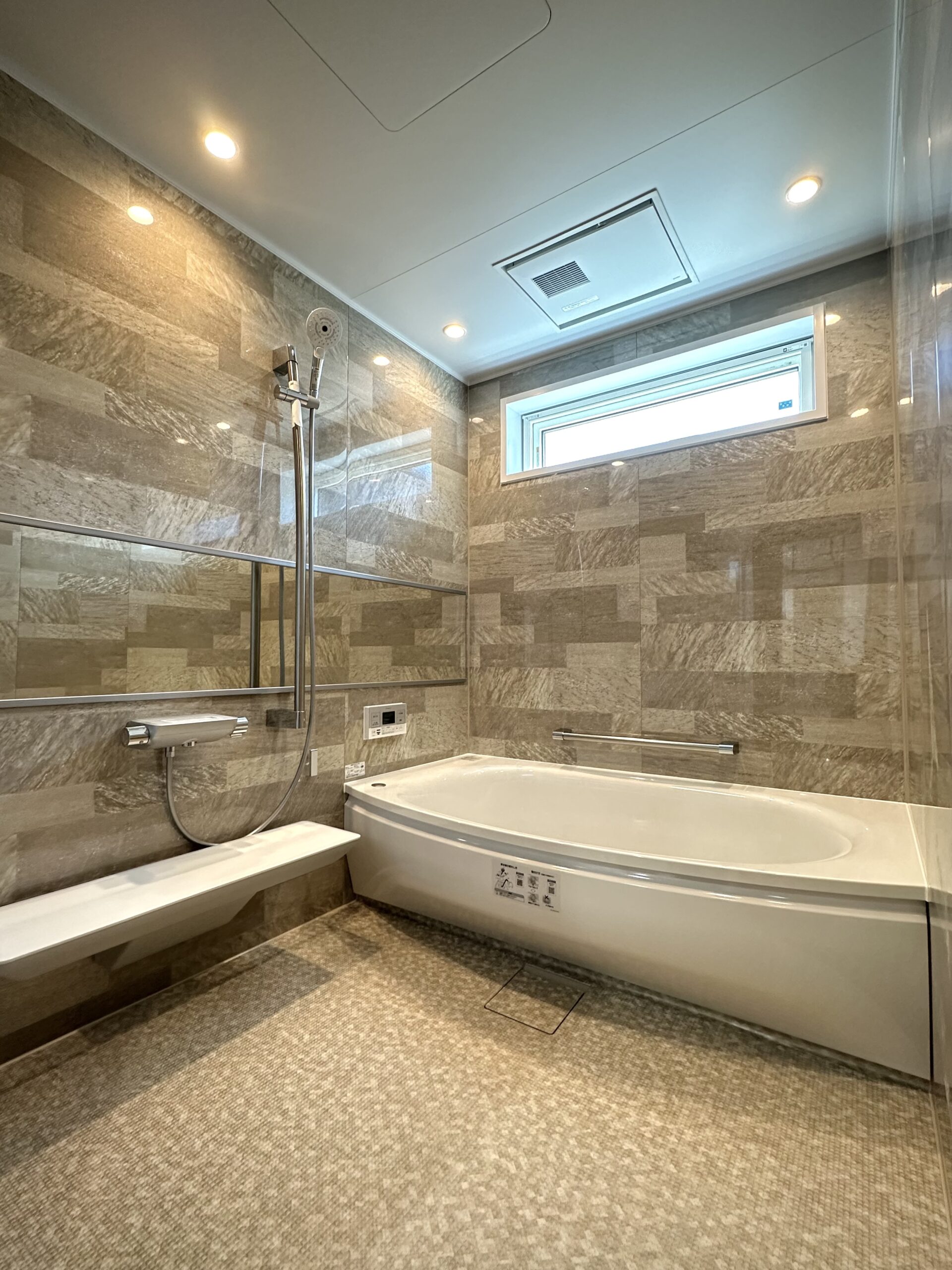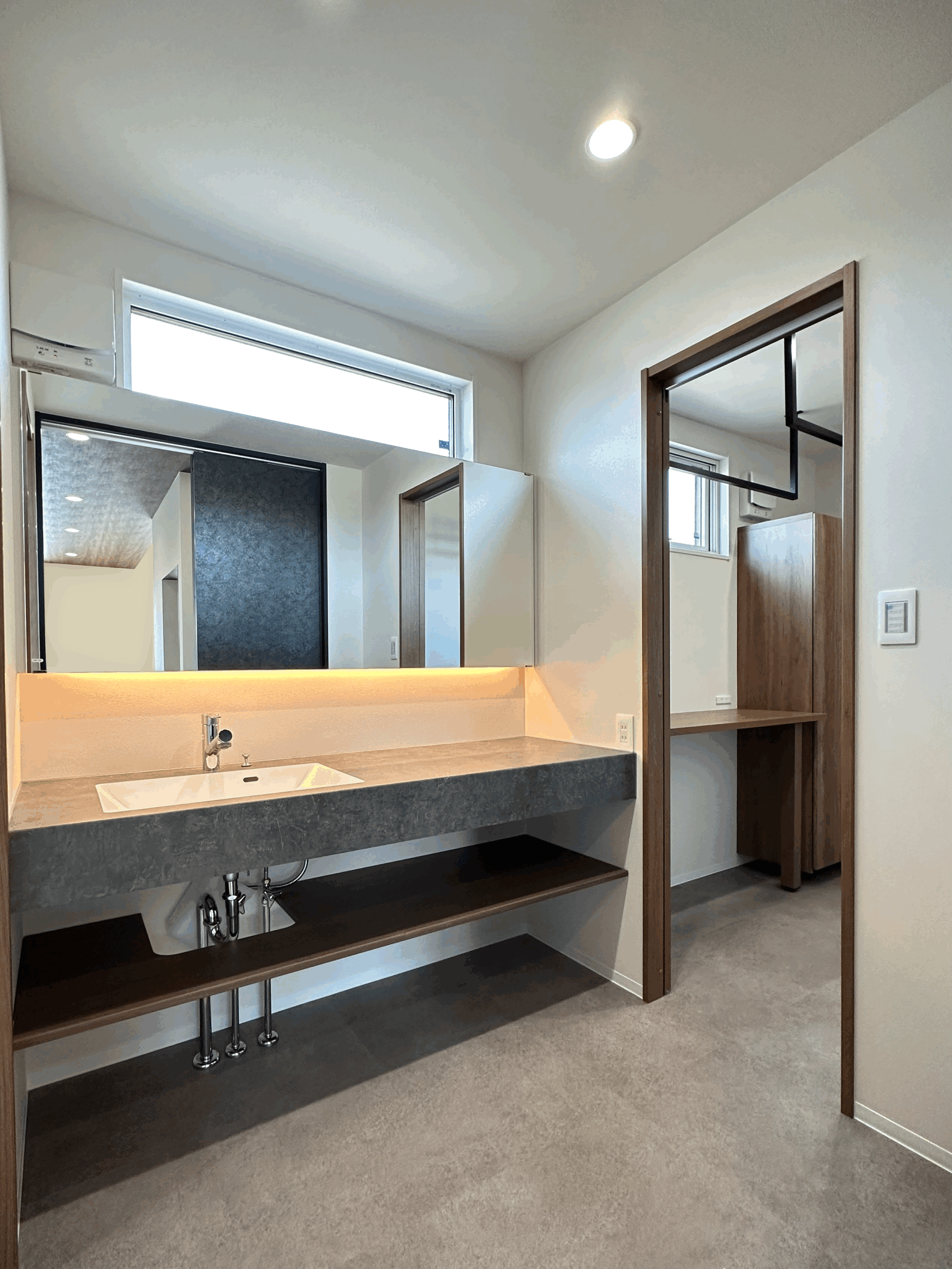 洗面鏡にあしらった間接照明がホテルライクで毎日の身支度も楽しくなりそうです