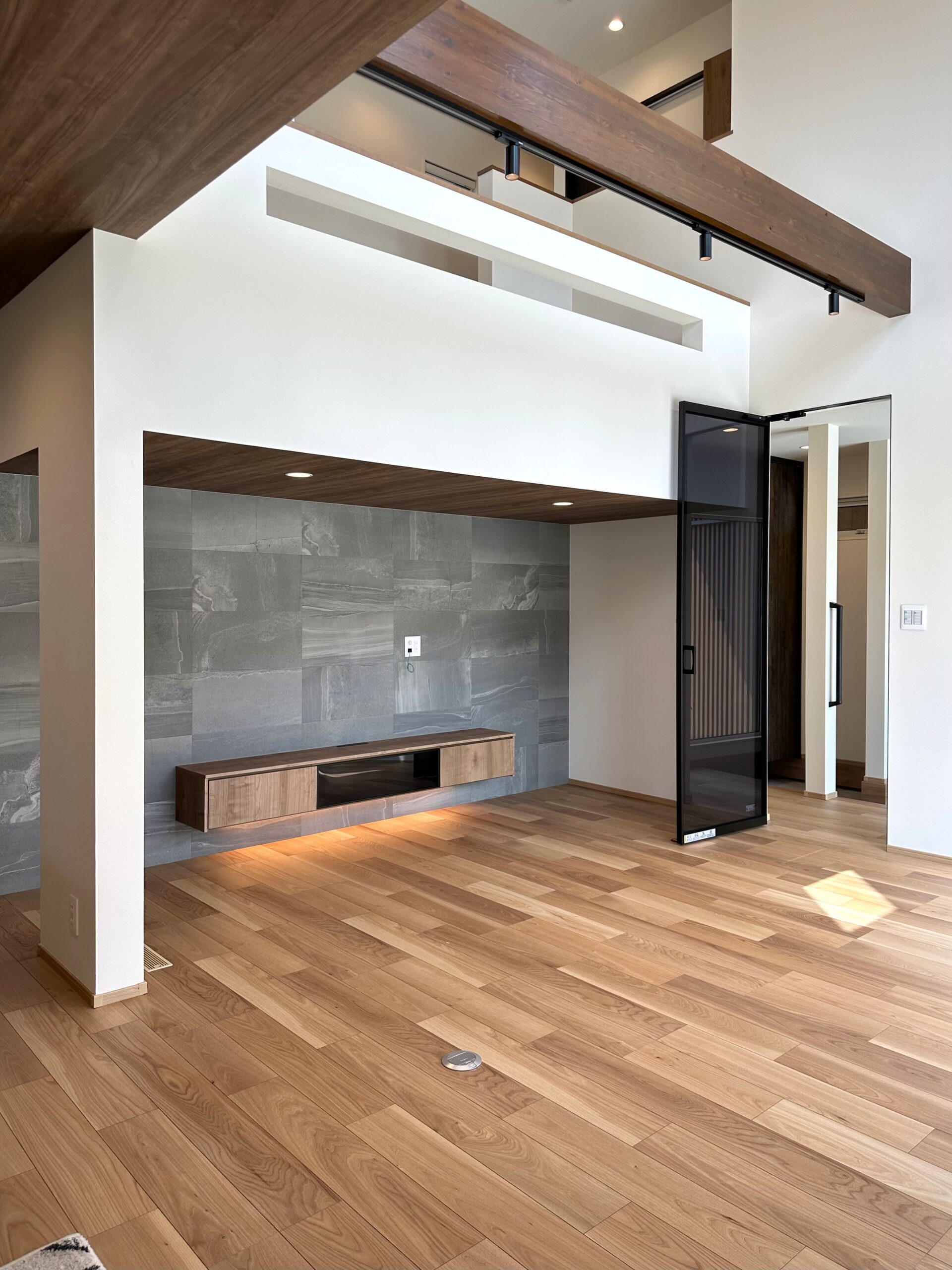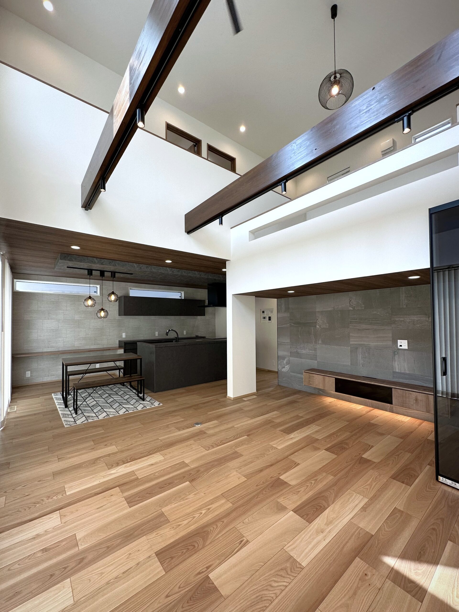 二本の化粧梁がアクセントになり空間にメリハリを生み出します