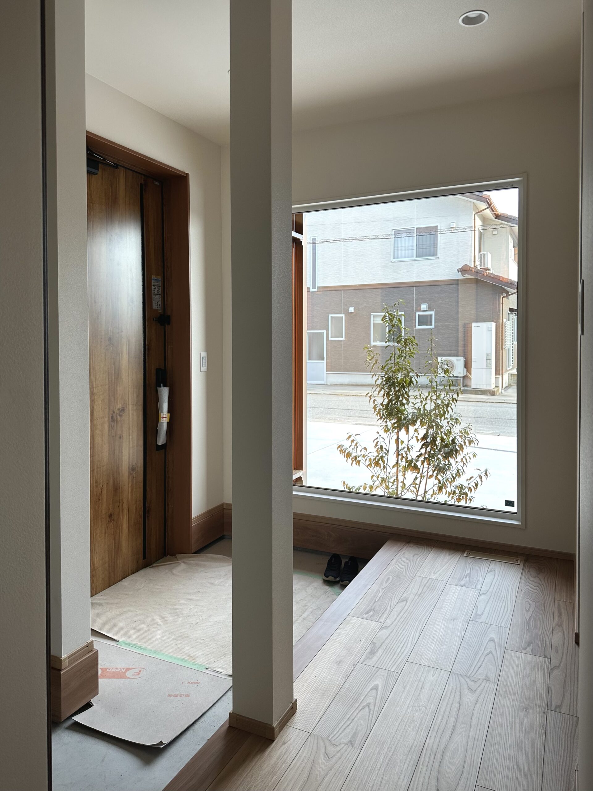 エントランスのFIX窓も存在感があり自然光を多く取り込みます