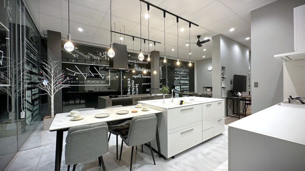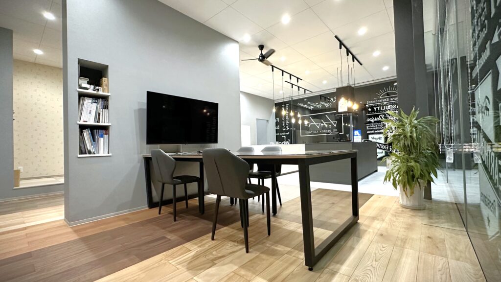 新事務所内には、キッチン・トイレ・浴室などの住宅設備を設け、実際の暮らしを思い描きながらご覧いただけるショウルームとしての機能を持たせました。