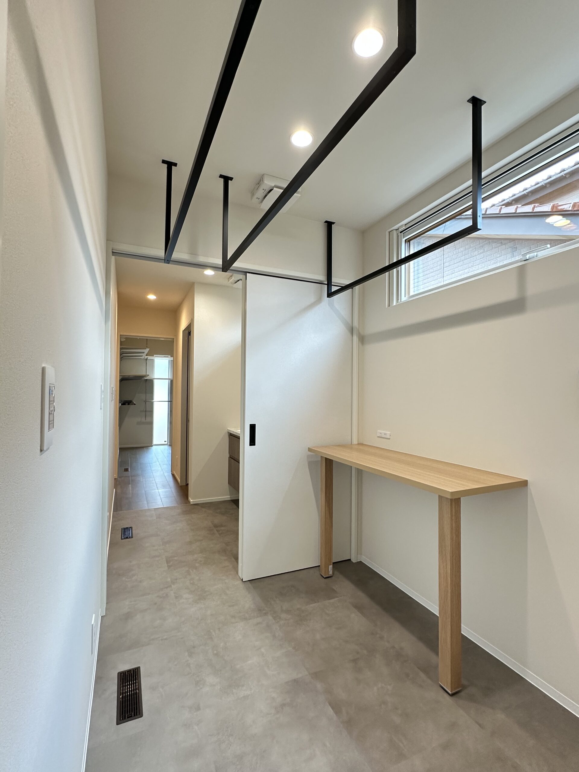 洗面室→ランドリースペース→脱衣室と水回りが一直線に繋がっています