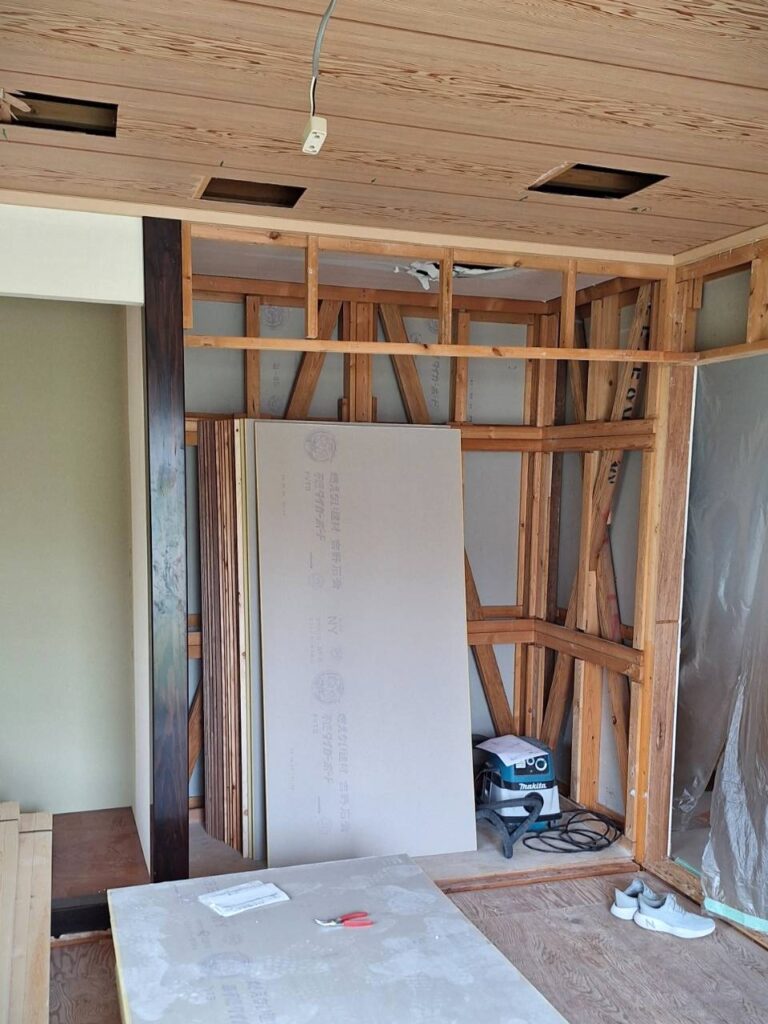 押し入れの襖も取り除き、下地ボードも張り替えていきます