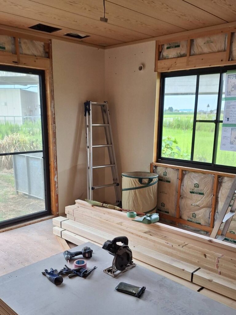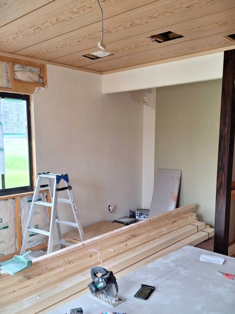 下地合板を張り、その上からクロスを貼っていきます
