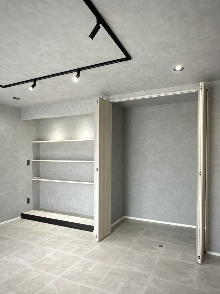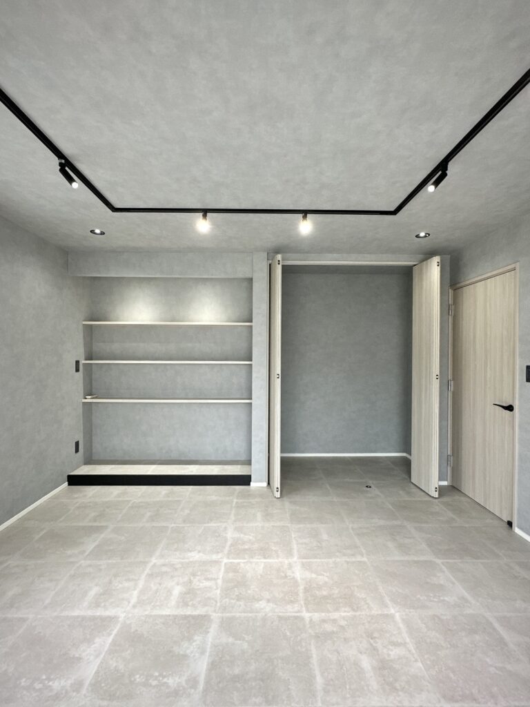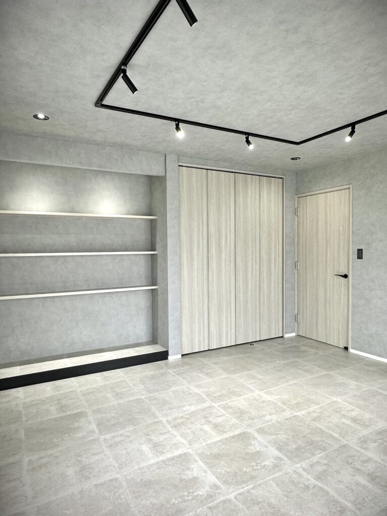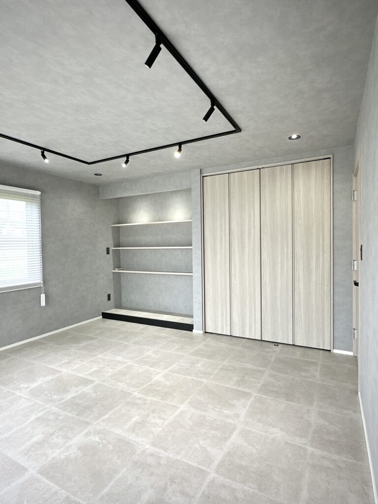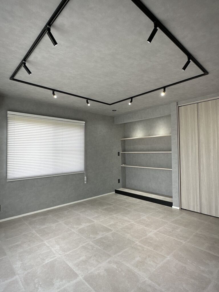 自宅でネイルサロンを営むお施主様の和室8畳を、グレーモダンな接客室にリフォーム。