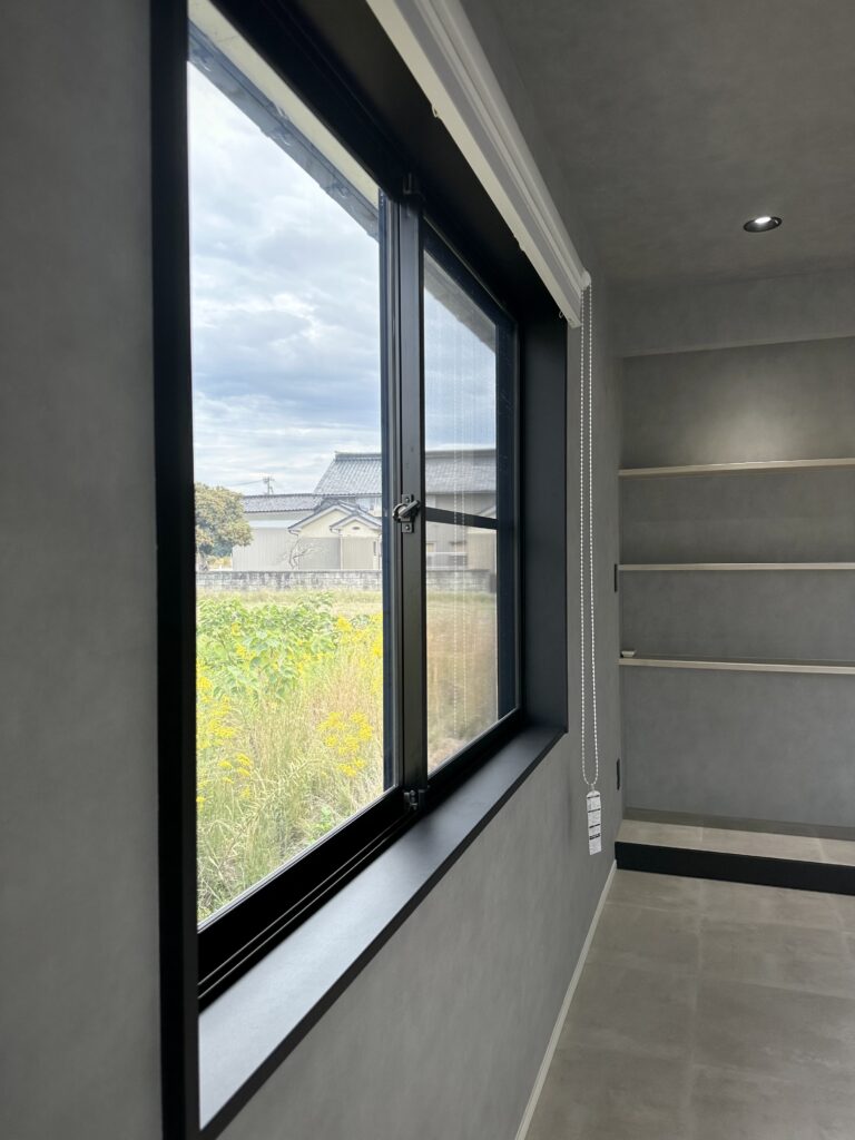 既存の窓枠は撤去し、お部屋の雰囲気に合わせたマットブラック枠を採用
