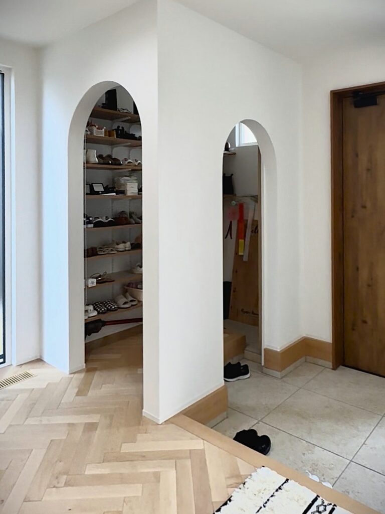 広さを十分に確保したシューズクロークはアーチ型で可愛らしさも兼ね備えています
