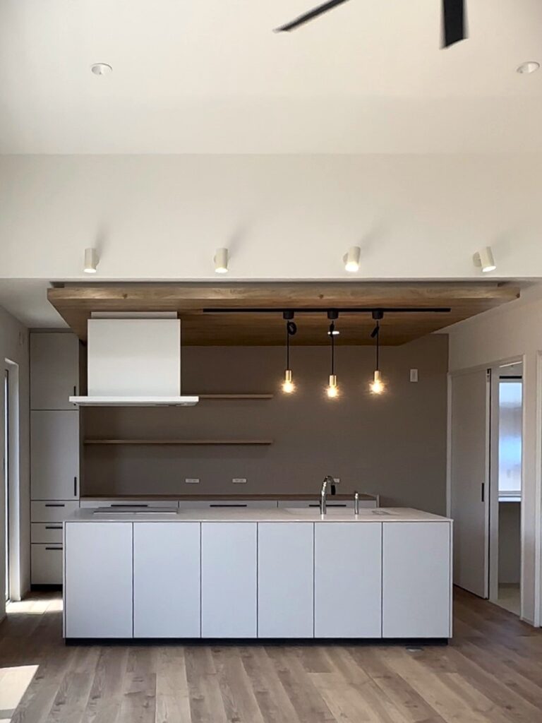 ホワイトで統一されたアイランドキッチン