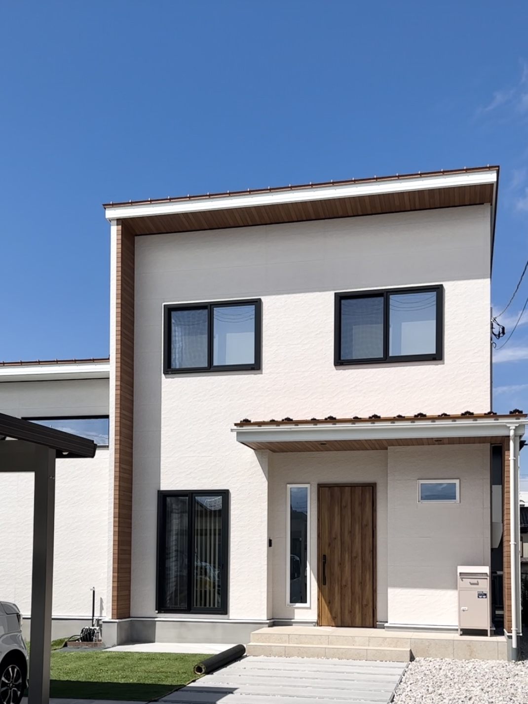 白外壁にオレンジ屋根の家族が集まる心温まる素敵なおうちです