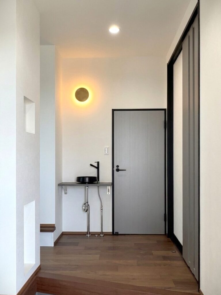 玄関前に洗面スペースを設置したことでトイレ後と帰宅後兼用で使えます