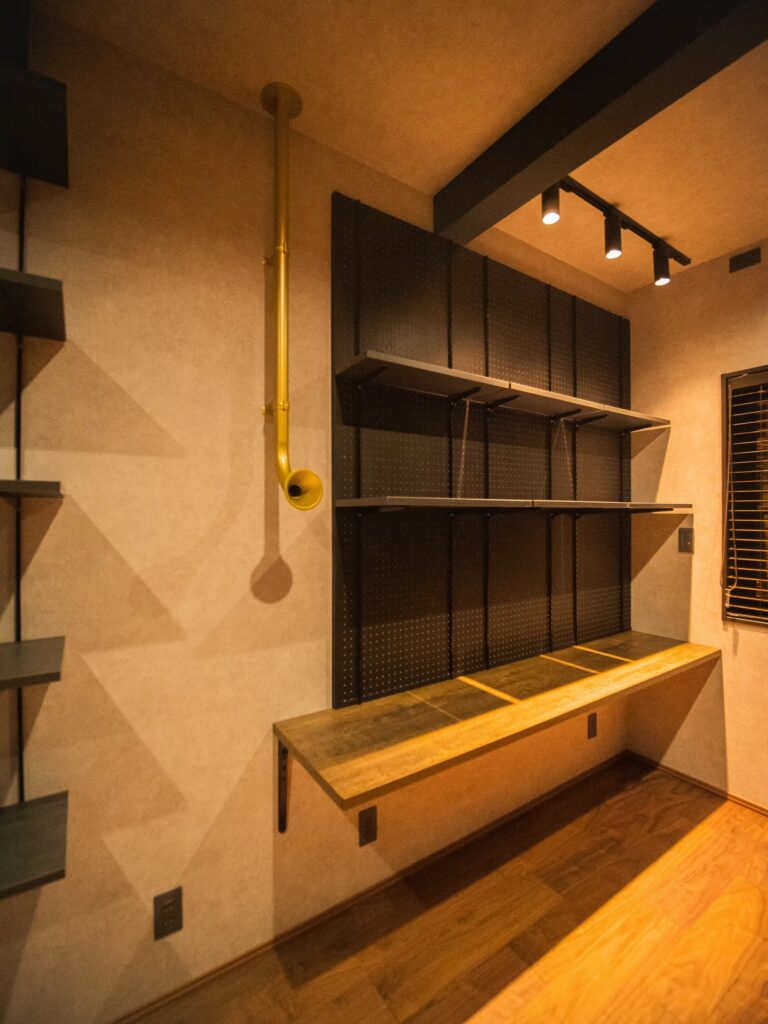 木目調の造作を取り入れた1階の趣味室は2階とは雰囲気ががらりと変わり