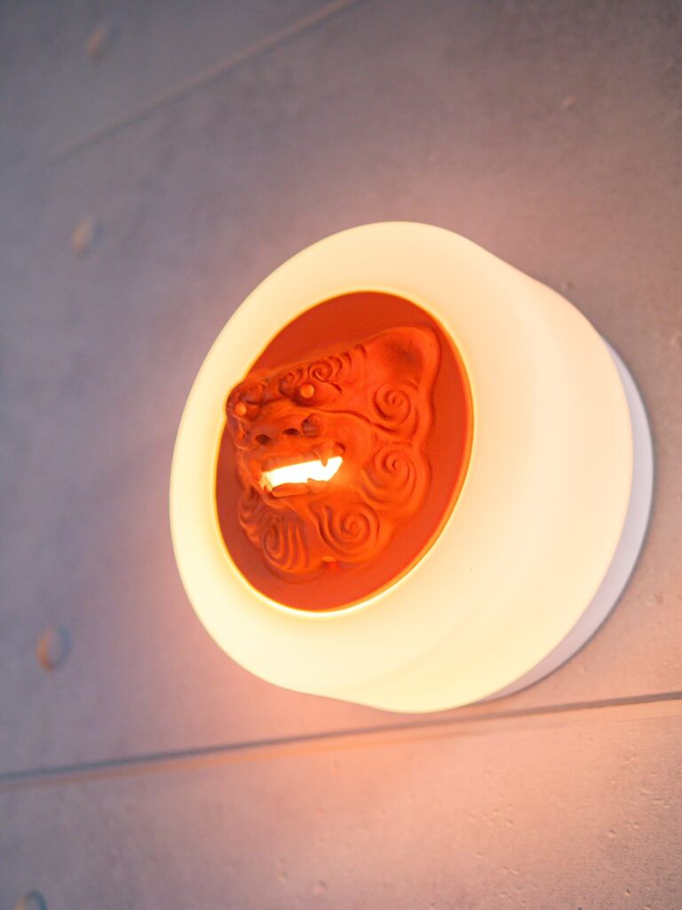 シーサーの照明が特徴的