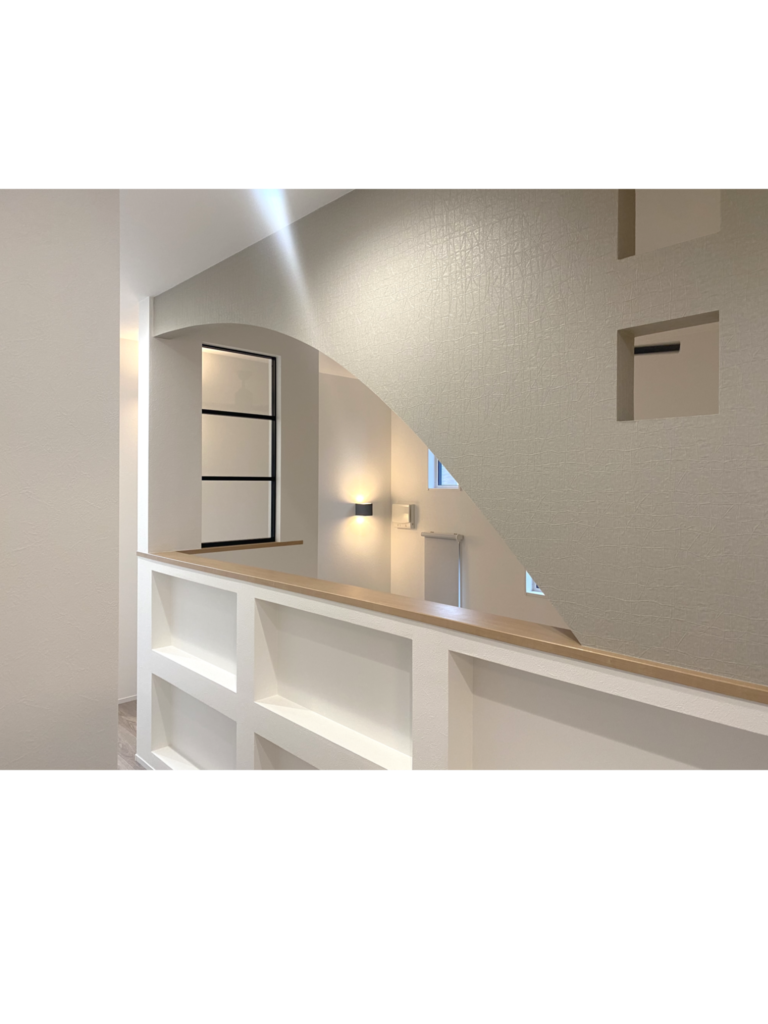 アーチの壁が特徴的な吹き抜け階段