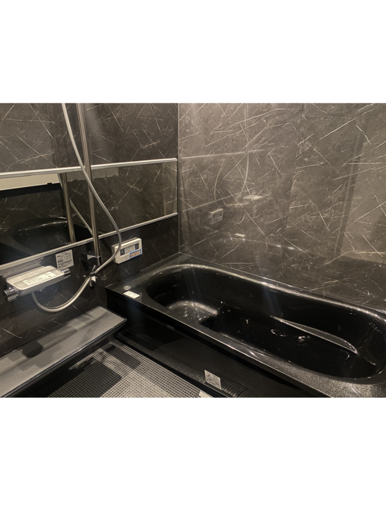 ブラックでまとめたスタイリッシュなバスルーム