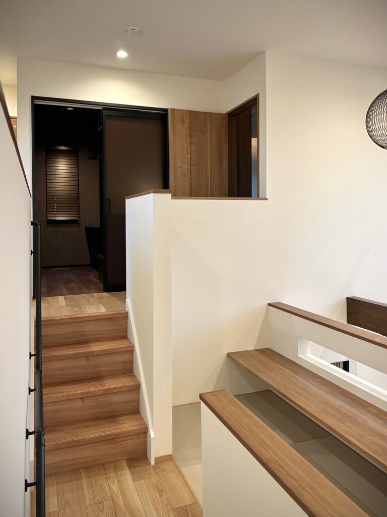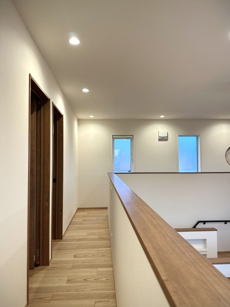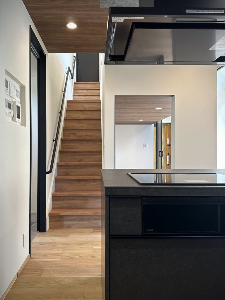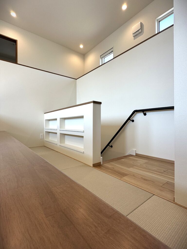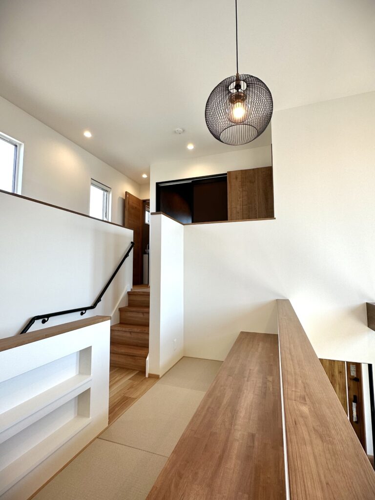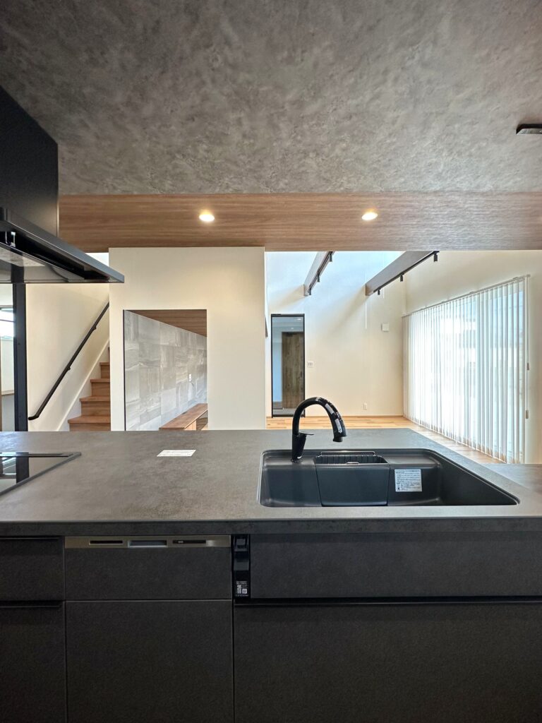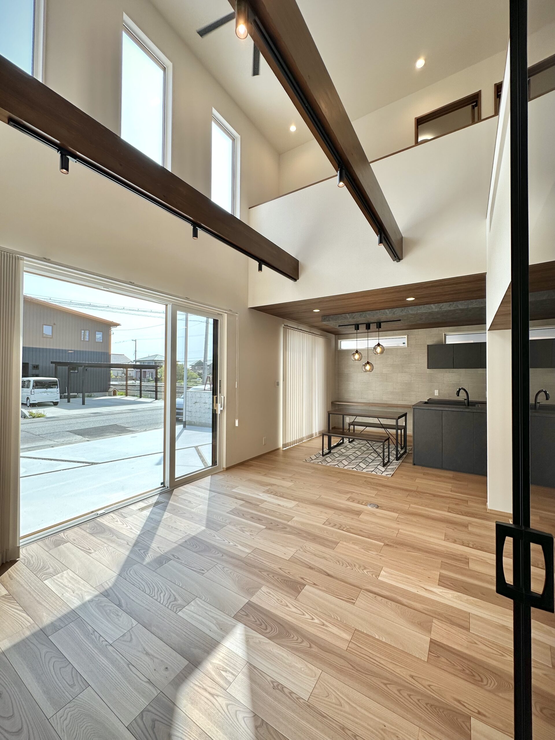 LDKは吹き抜けで開放感たっぷりで家族の気配を自然に伝えます。