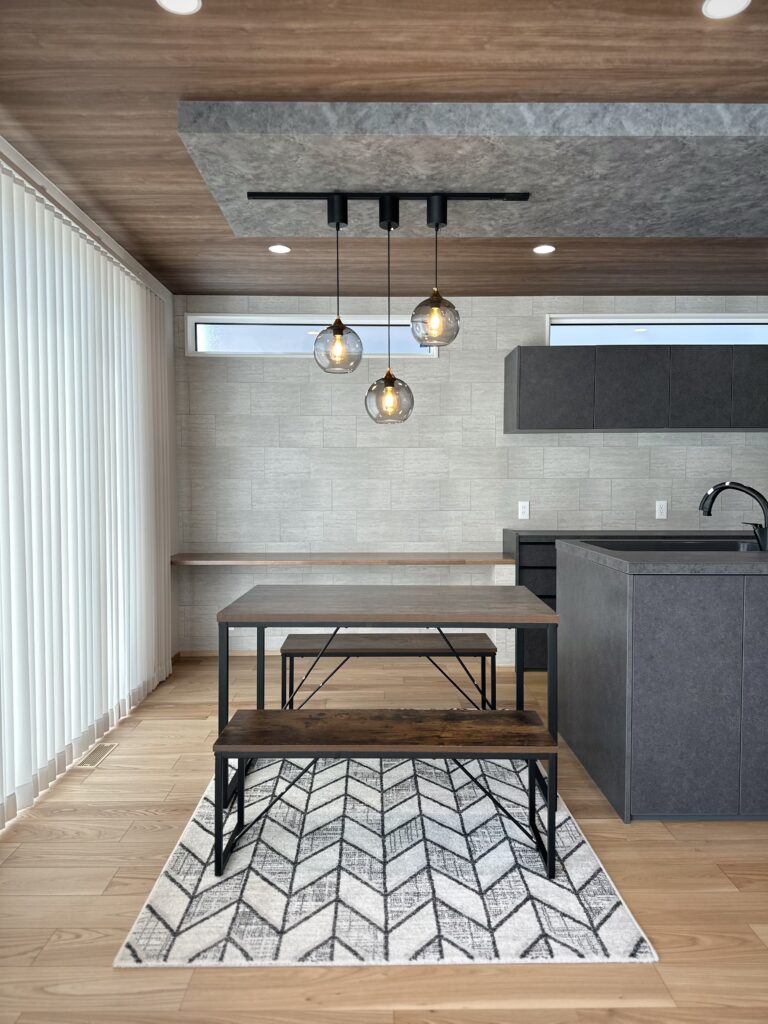 スタイリッシュな見た目の吊り下げ照明を採用