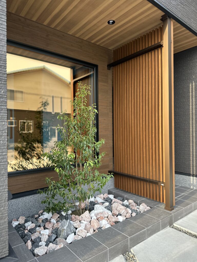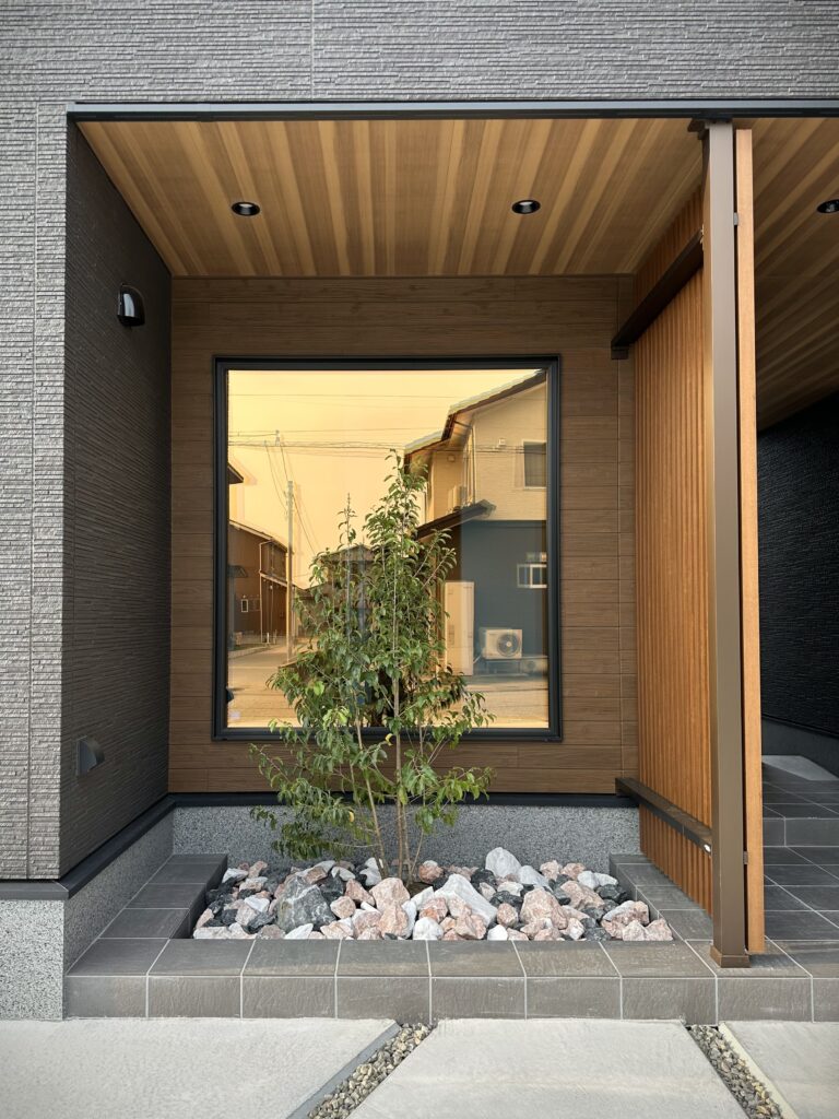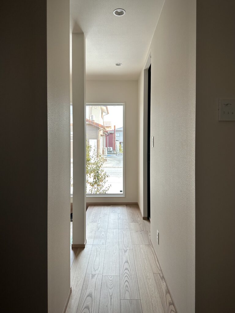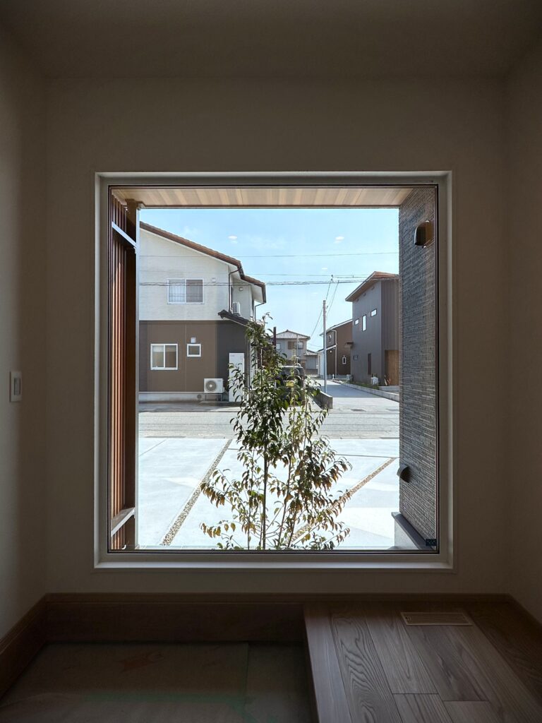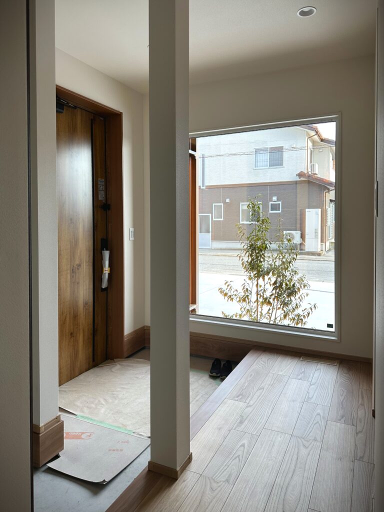 エントランスのFIX窓も存在感があり自然光を多く取り込みます