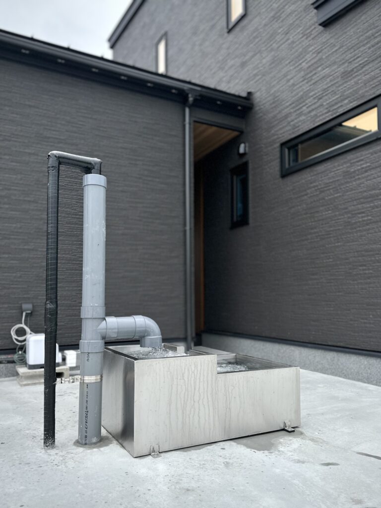 ガレージ裏に設置した井戸水は毎日のガーデニングで大活躍