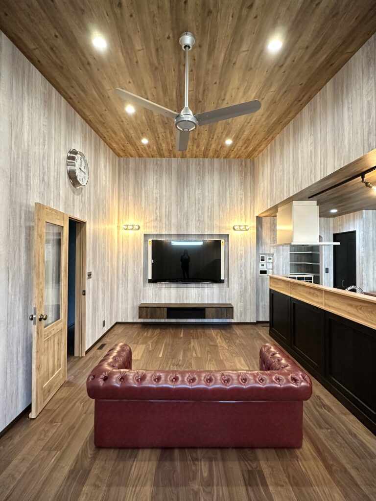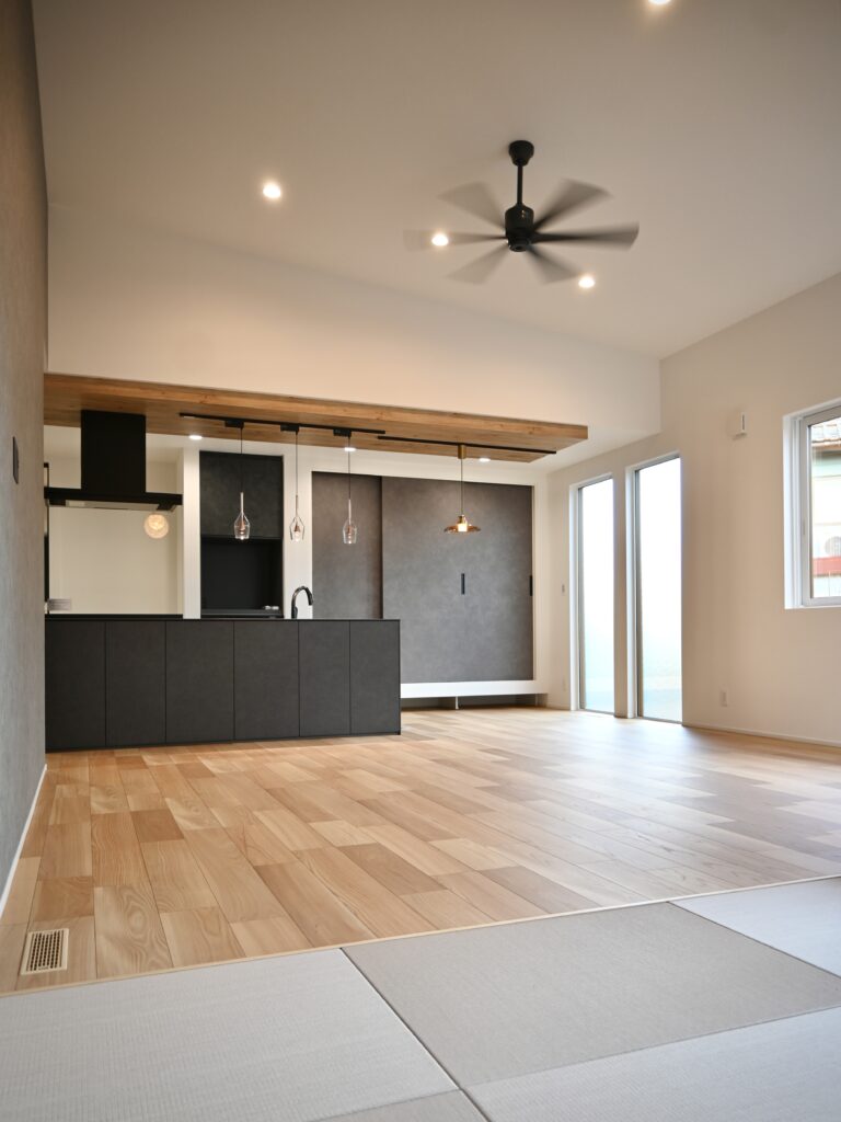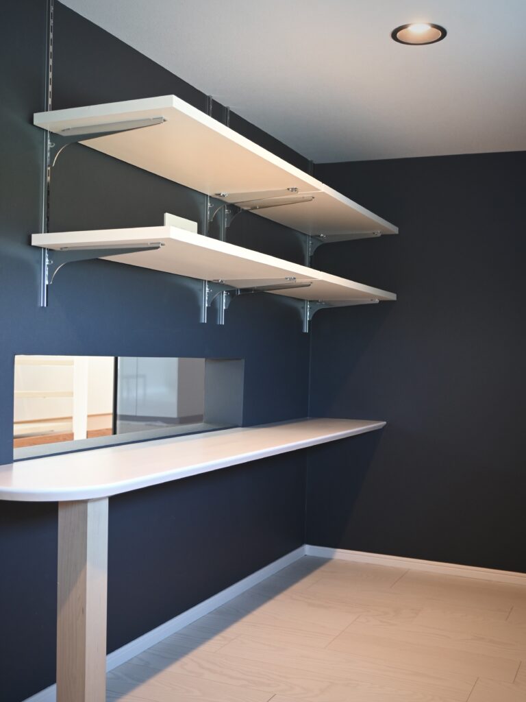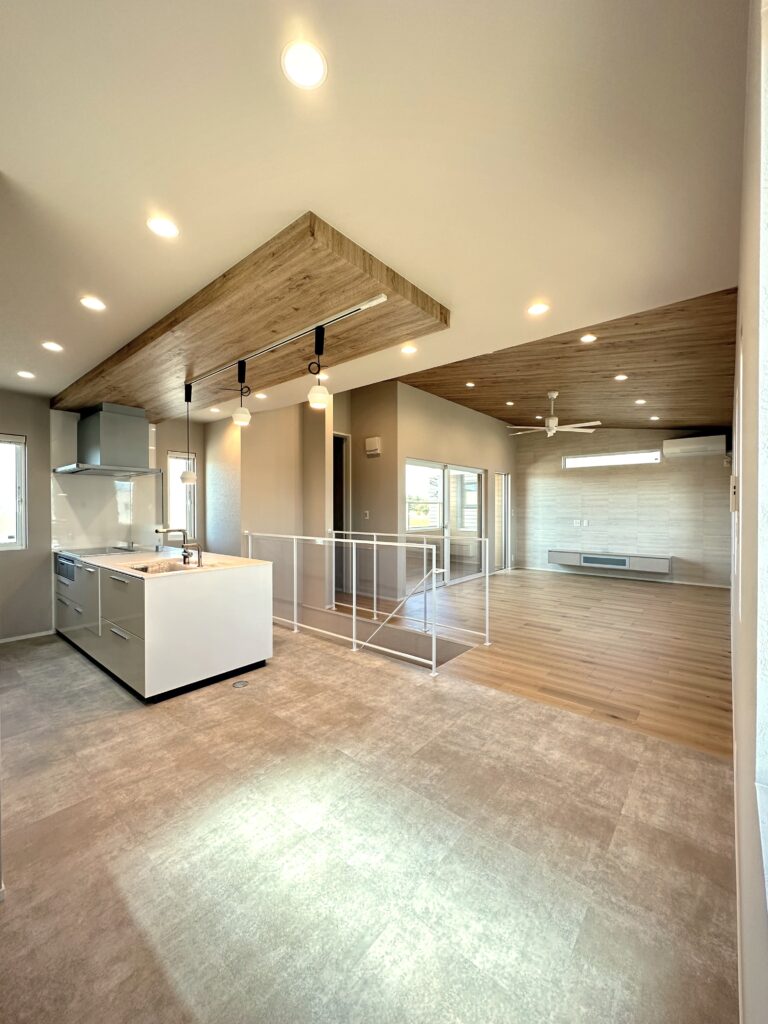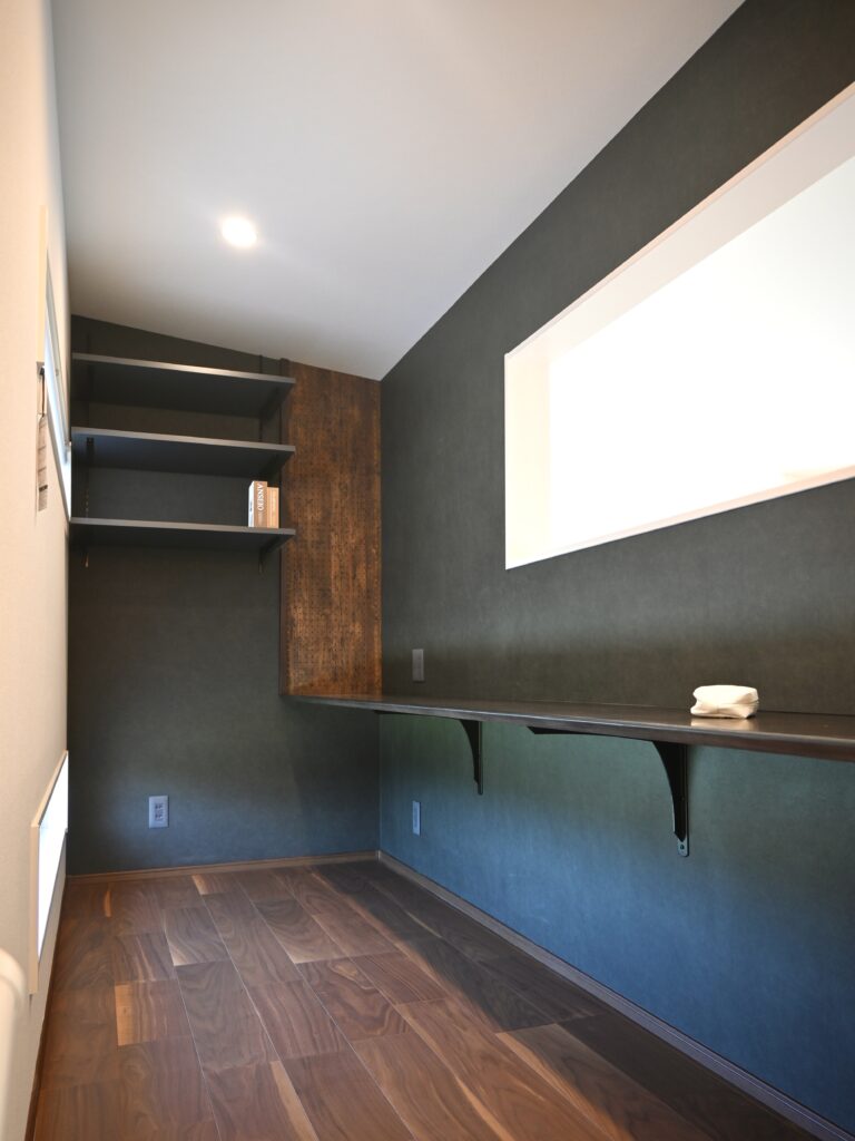 リビングとは対比した色味で落ち着いた雰囲気のあるスキップフロア