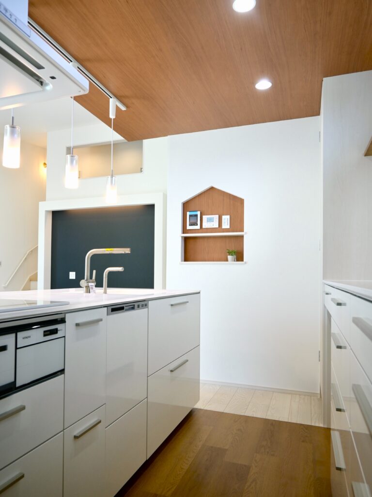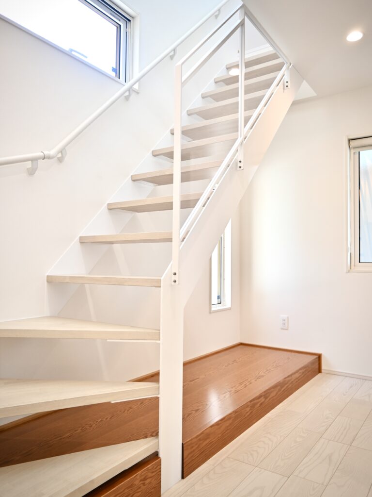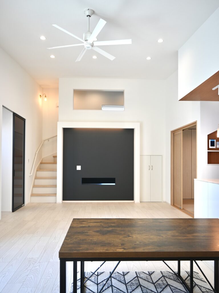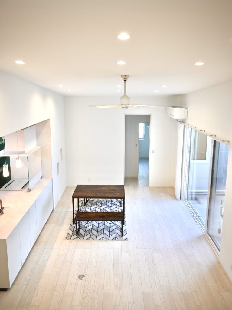 内装も白を基調としており、リビングンの大開口があたたかな光をたっぷりと取り込むので明るく開放的な印象。