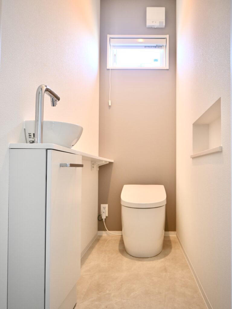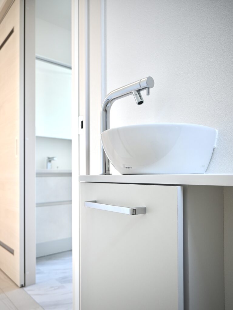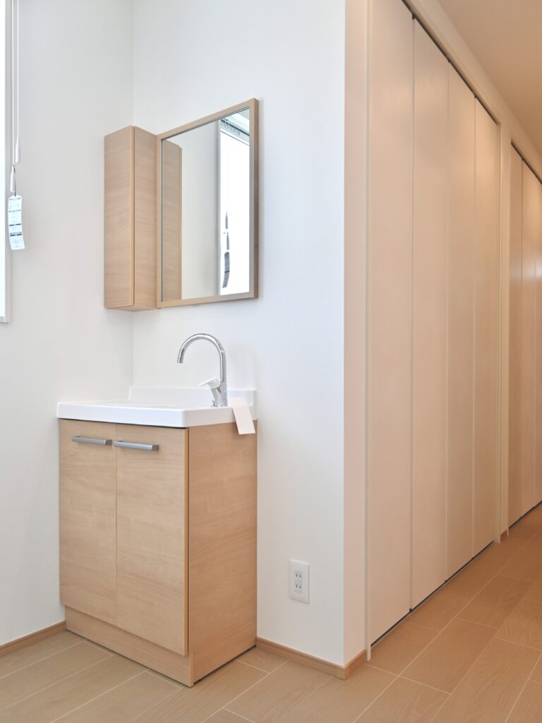 二階へ上がった先にはコンパクトな洗面台を設けています