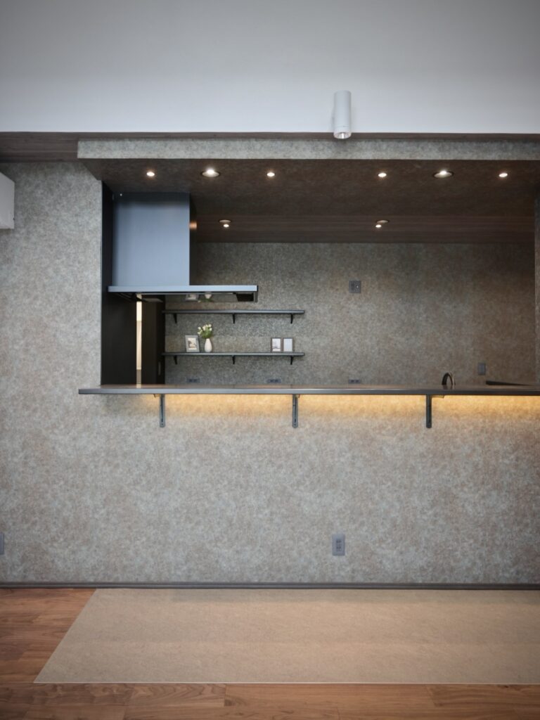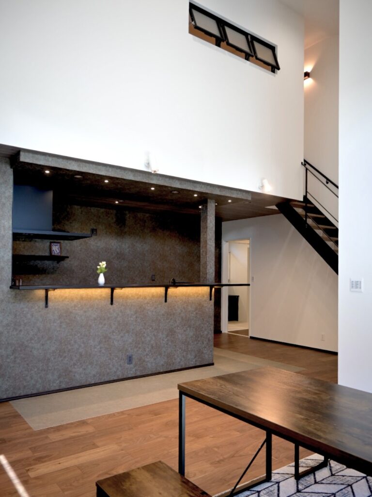昼はダイニングとして、夜はバーカウンターとして。『友人や知人を招いて呑み交わしたい』 そんなお施主様の理想を実現