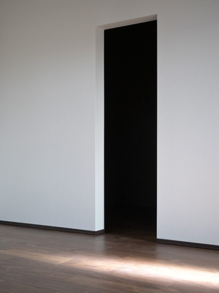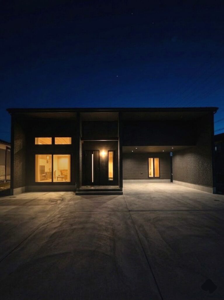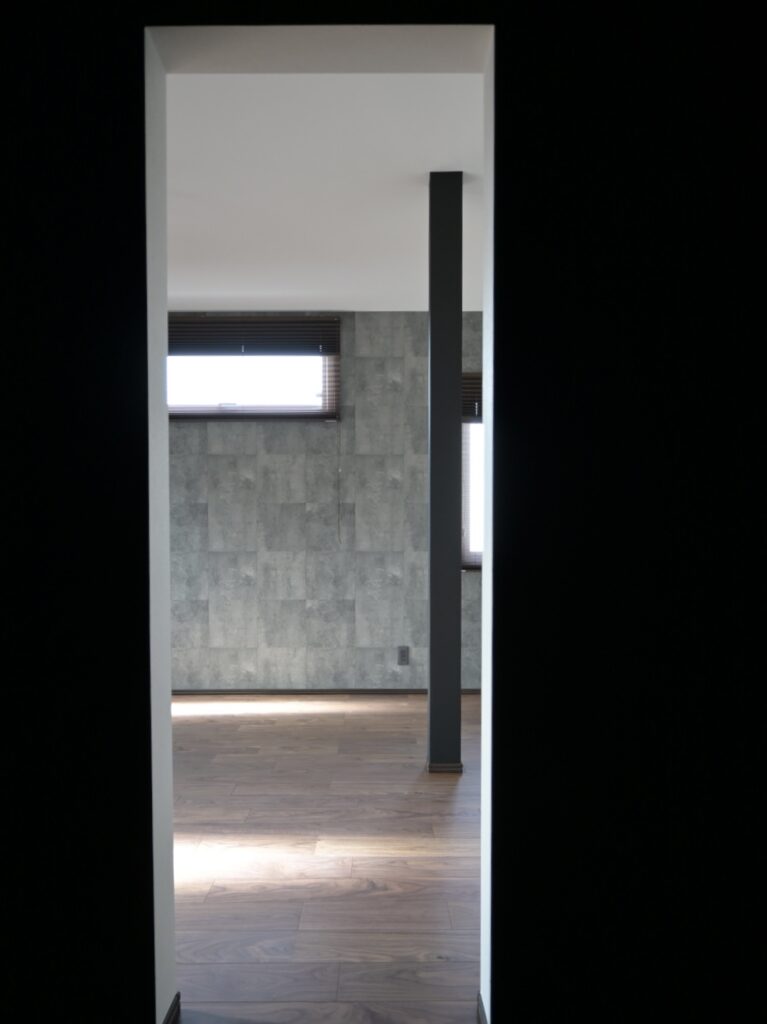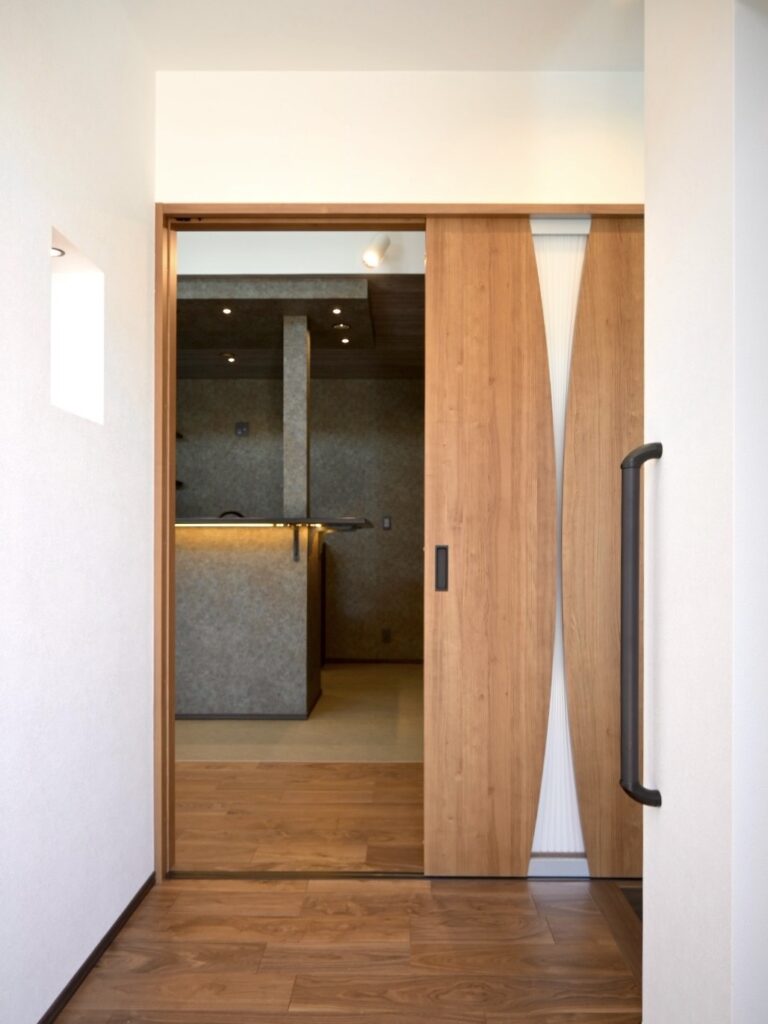 エントランスからはキッチンとカウンターのみを見せる生活感を生ませない間取りになっています