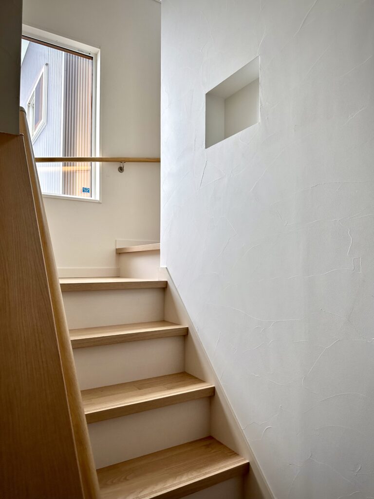 全面漆喰塗の壁がお部屋の雰囲気に合わせた