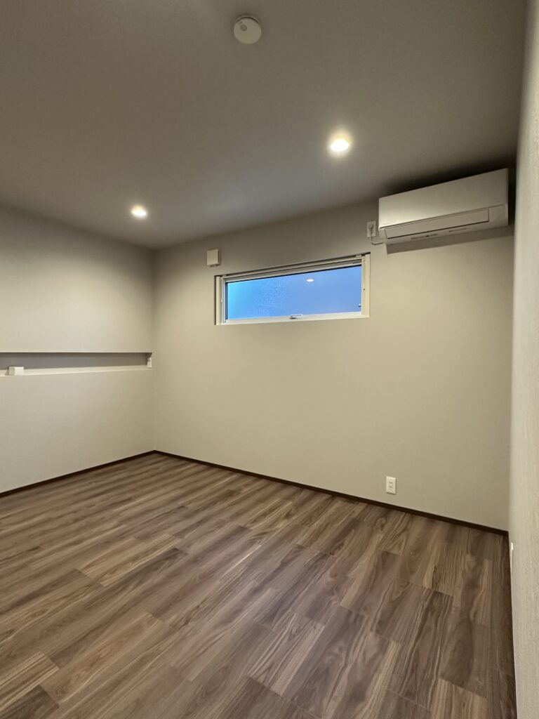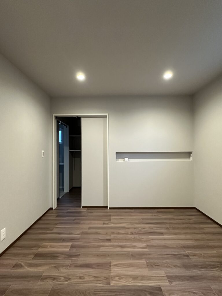 色味を落とした一階寝室。ニッチはベッドの高さに合わせて設けました