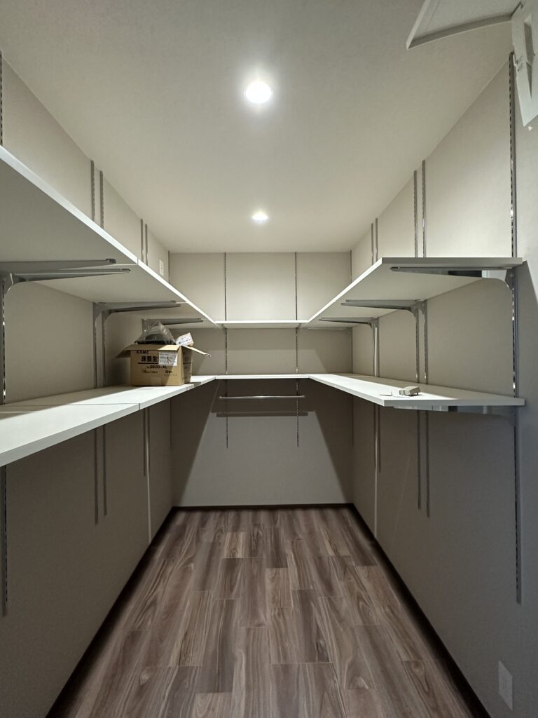 寝室とランドリールームをつなぐ大容量のクローゼット