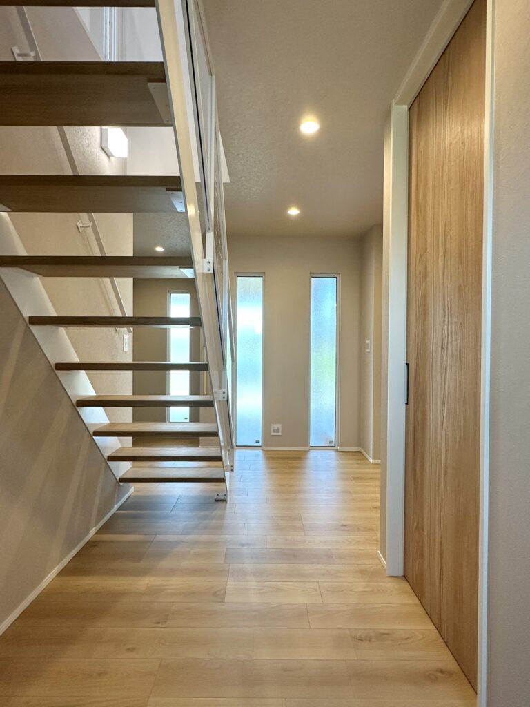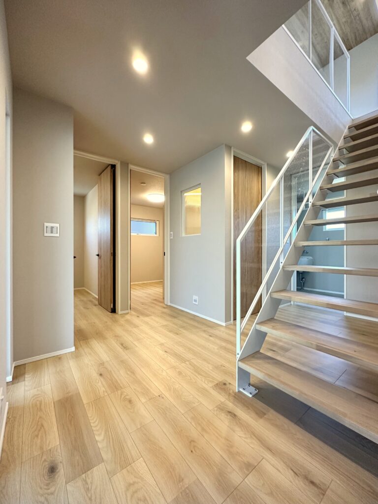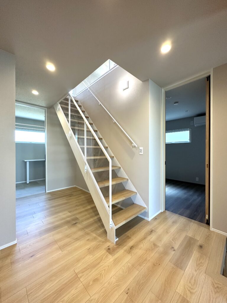 抜け感のあるスケルトン階段にしたことで空間に奥行きを感じさせます