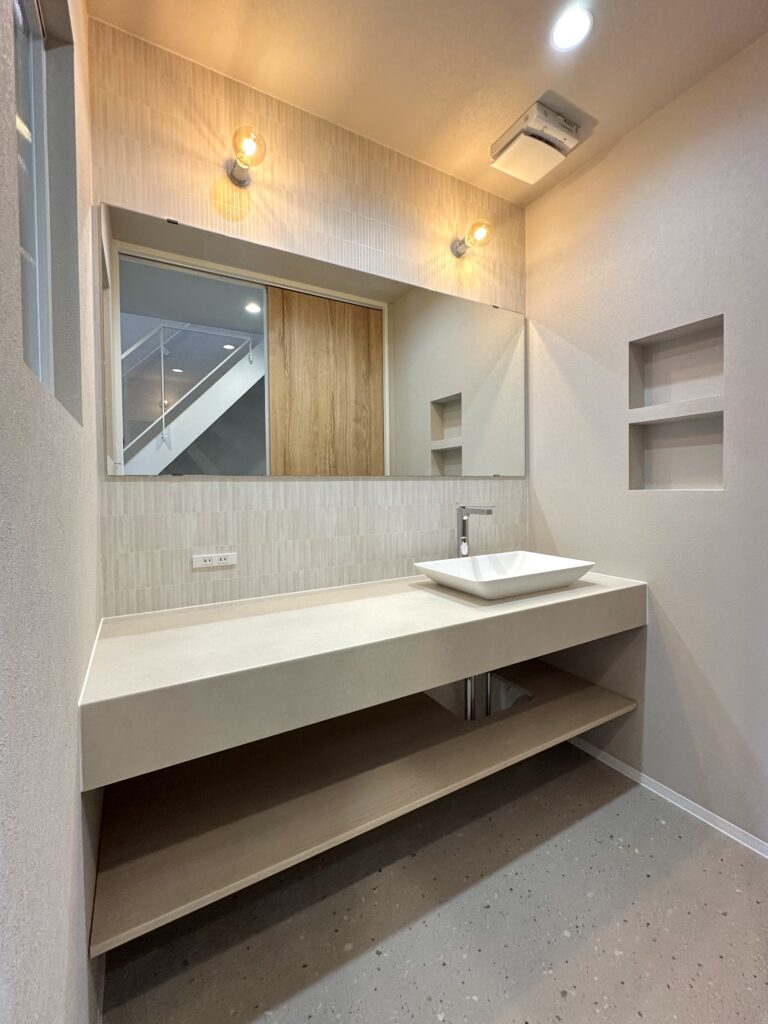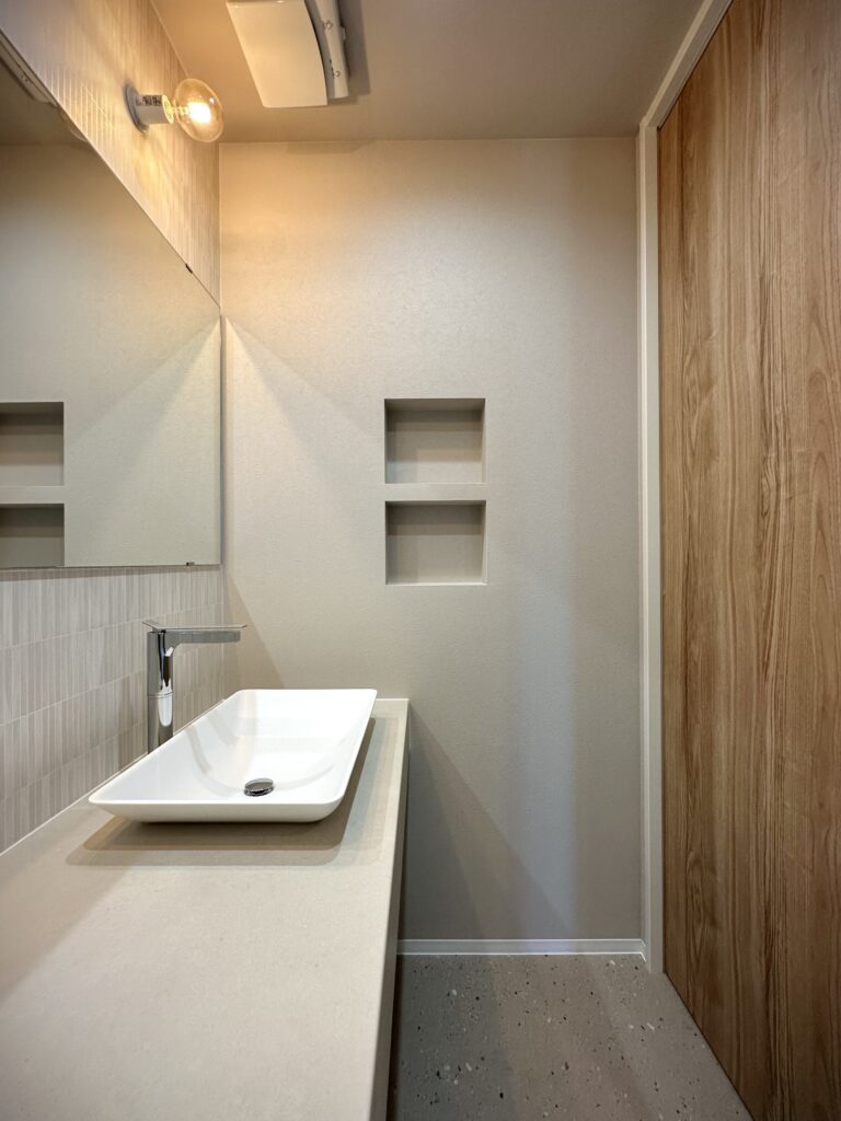 水回りは基本シンプルな色使いで清潔感ある空間に