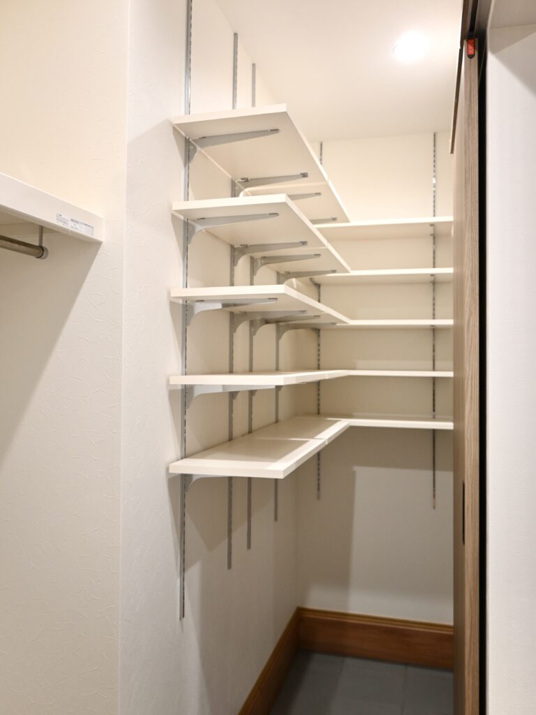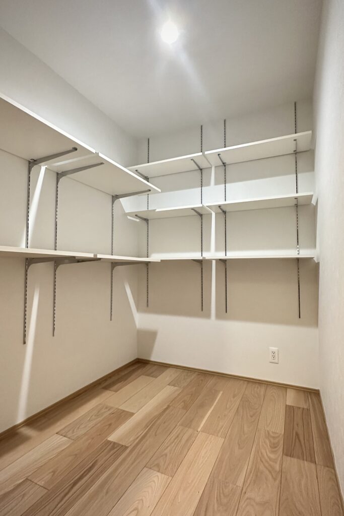 水回りへのアクセスも容易で、家全体を回遊できるよう設計されたクローゼットに注目。