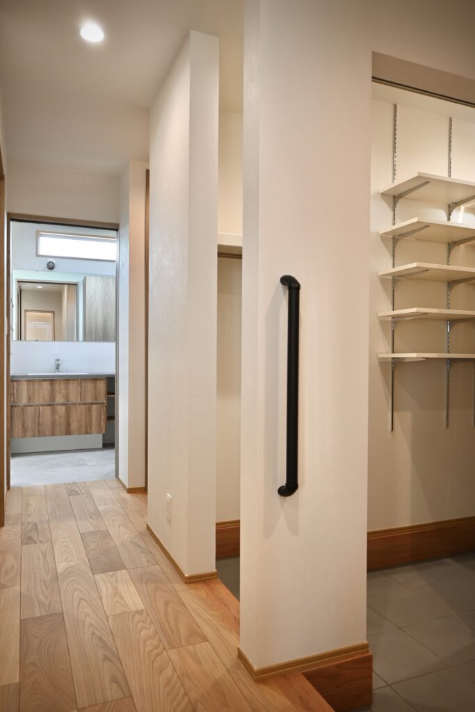 リビングと水回りを結ぶクローゼットは家事の効率も生活のしやすさも上がります