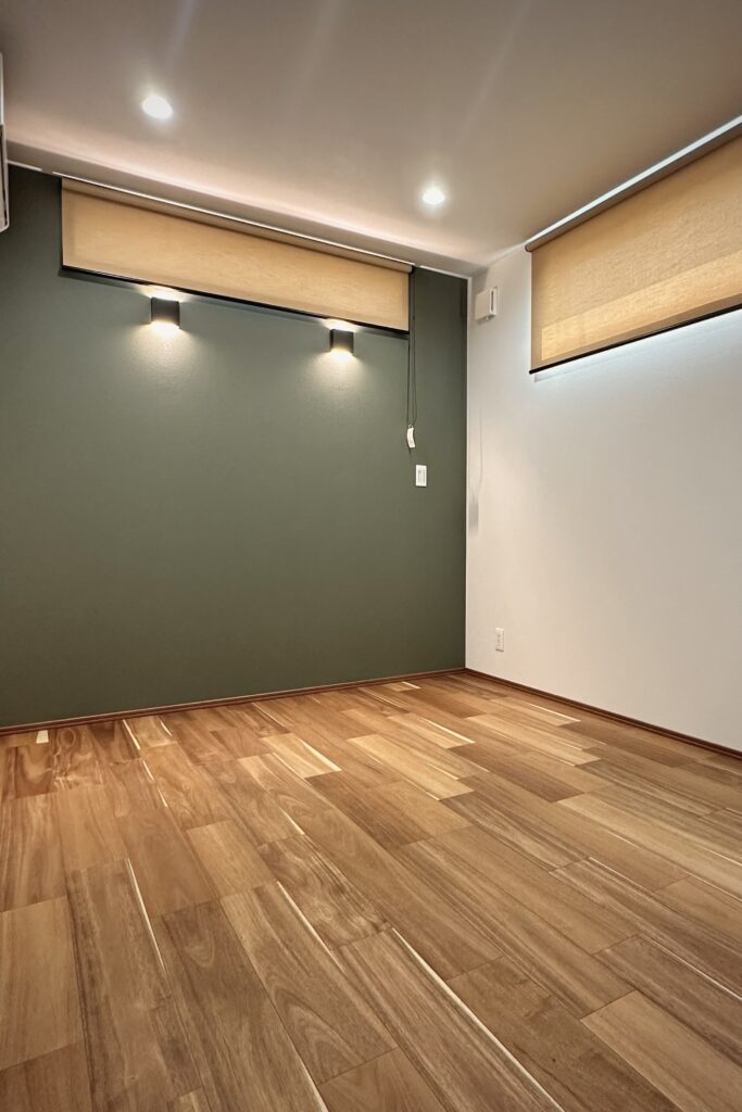 リラックスできる空間でありながら、グレー色を取り入れ空間のバランスを調和。