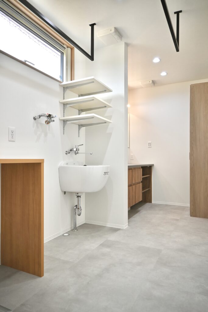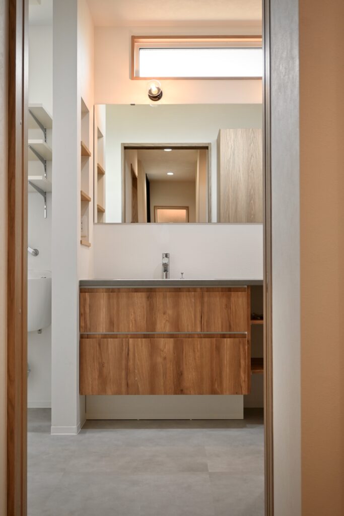 洗面室とランドリースペースは仕切りをなくしたことですっきり広々
