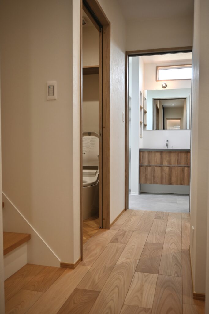 エントランス付近にあるとうれしいトイレや洗面室がすぐそこに。
