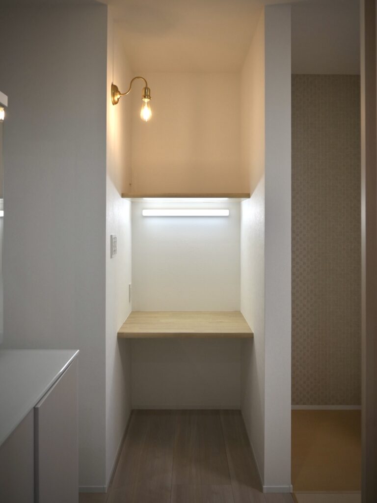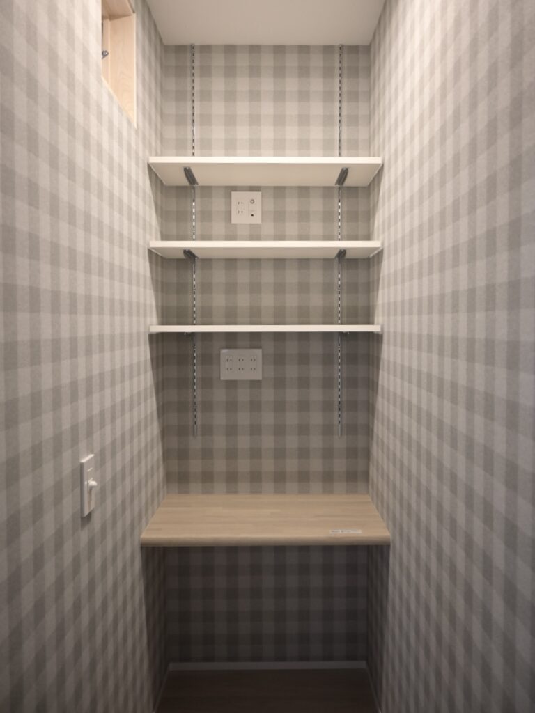 キッチン隣の小さな造作カウンターは多用途に使えて便利