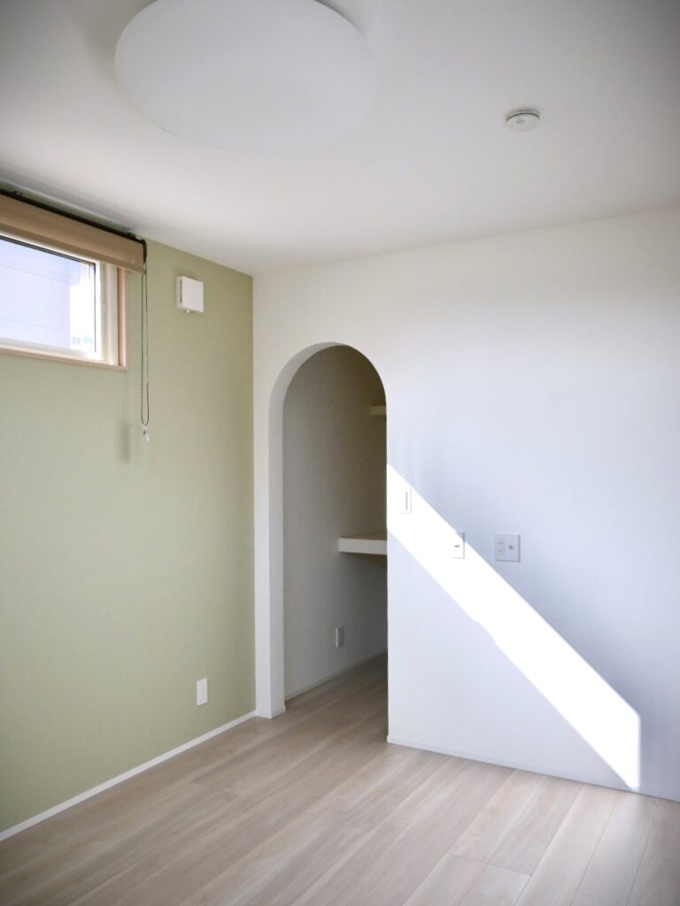 隣のお部屋は色違いのクロスとハイドアで遊び心を