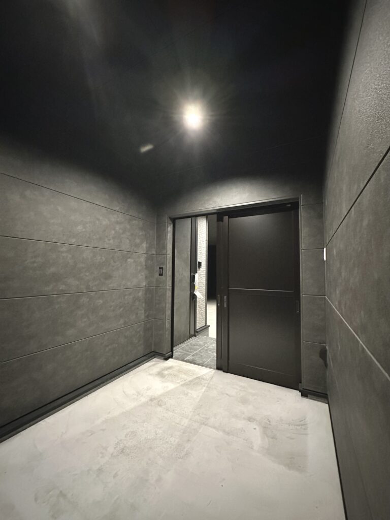框(かまち)の間接照明がホテルライクなエントランス