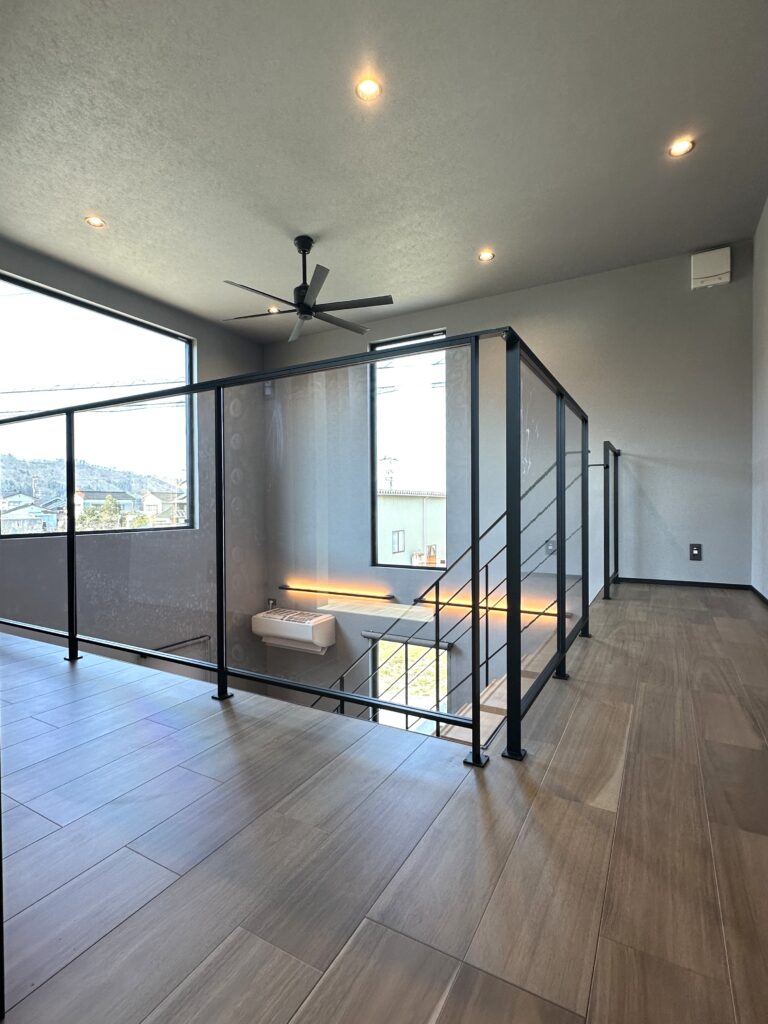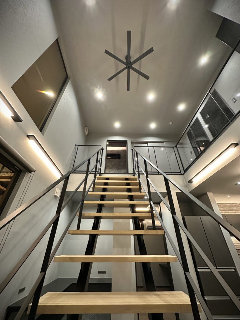 アイアン階段と吹き抜けで開放感を演出。