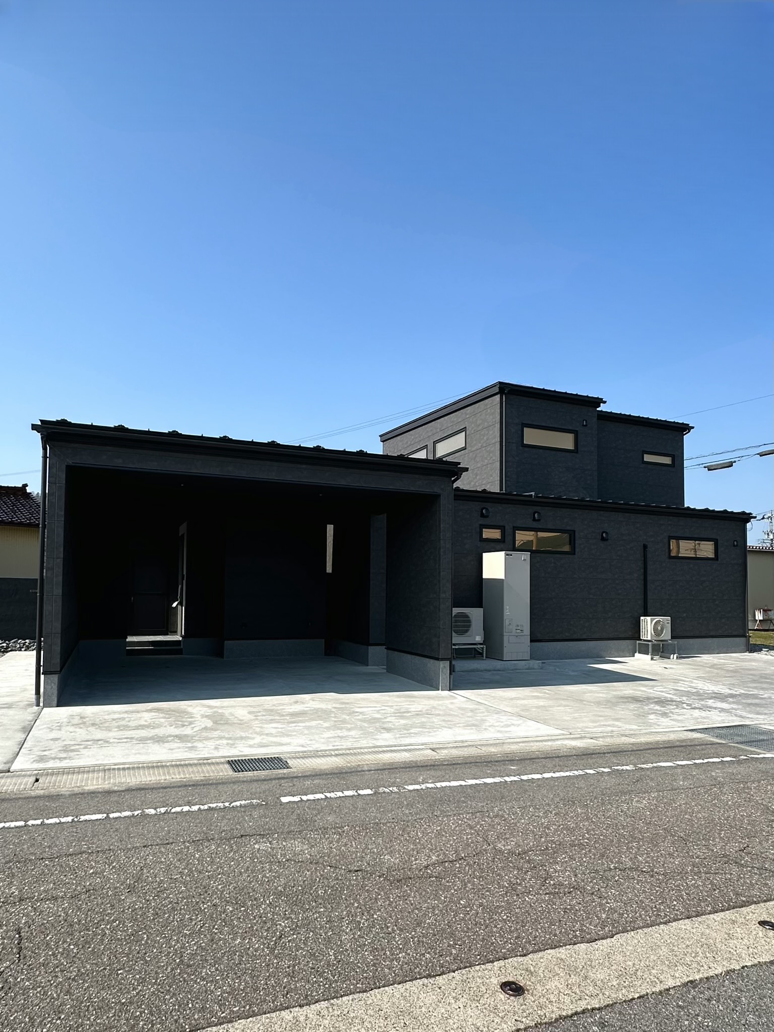 外観に合わせたモノトーンな玄関ドア