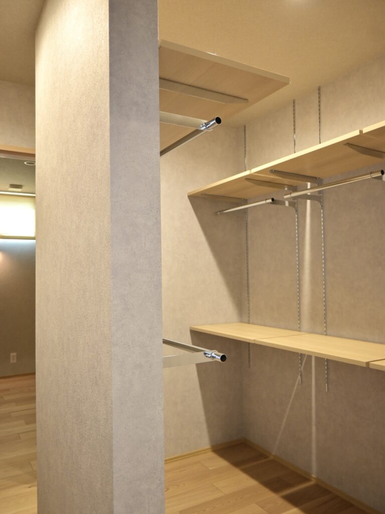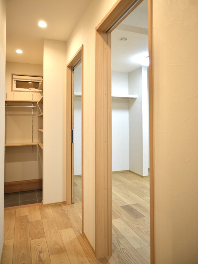 寝室とランドリールームをつなぐWICは家事の効率と生活のしやすさをグンと上げます