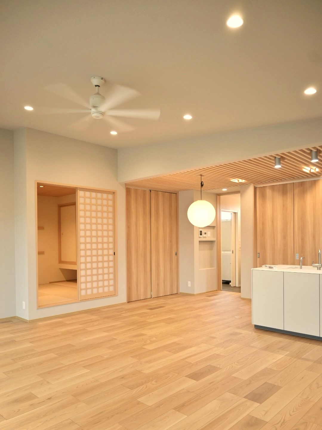 平屋だからこそできたシンプルで効率よく動ける生活動線や開放的な空間づくり。