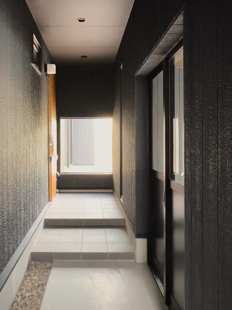 エントランスはインナーガレージ奥にある為、正面からは見えないようになっています。