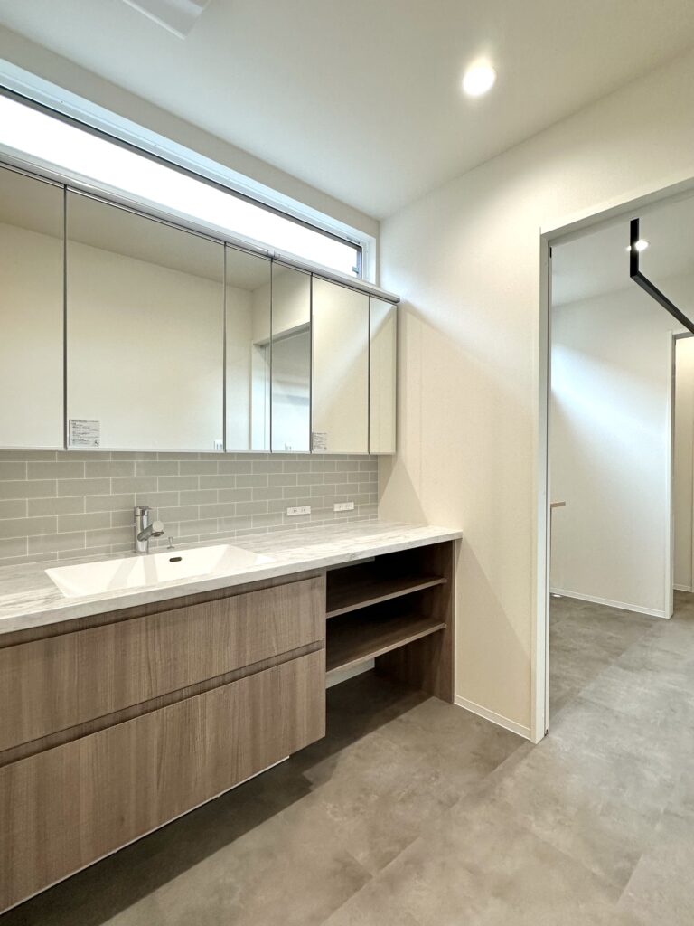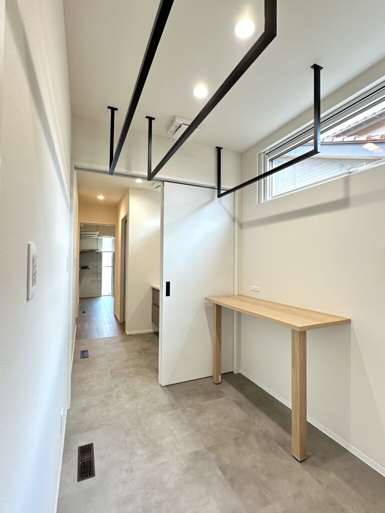 洗面室→ランドリースペース→脱衣室と水回りが一直線に繋がっています