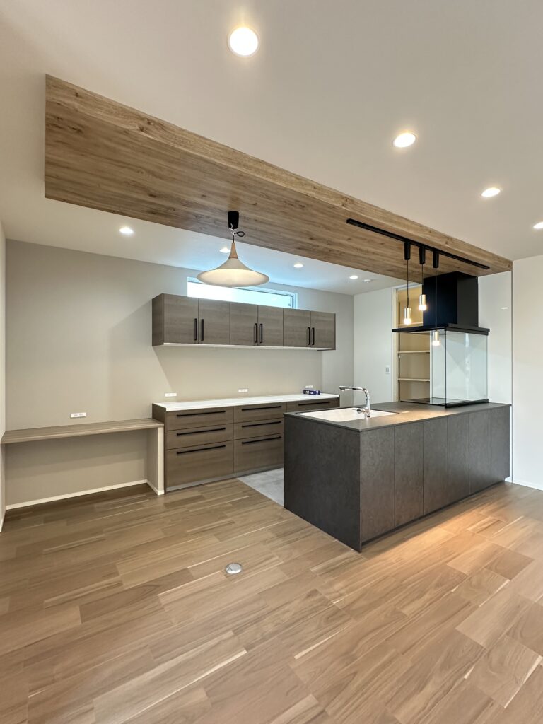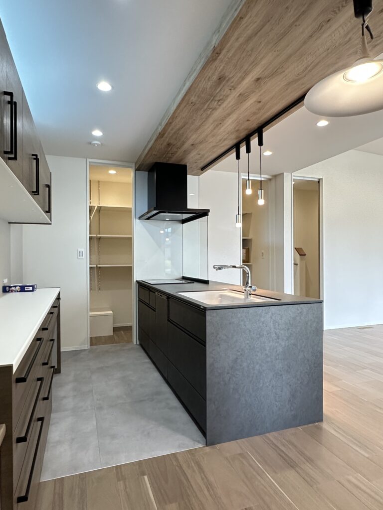 そこからつながるキッチンは、水まわりや収納へとスムーズにアクセスでき、日々の家事を効率よくサポートします。