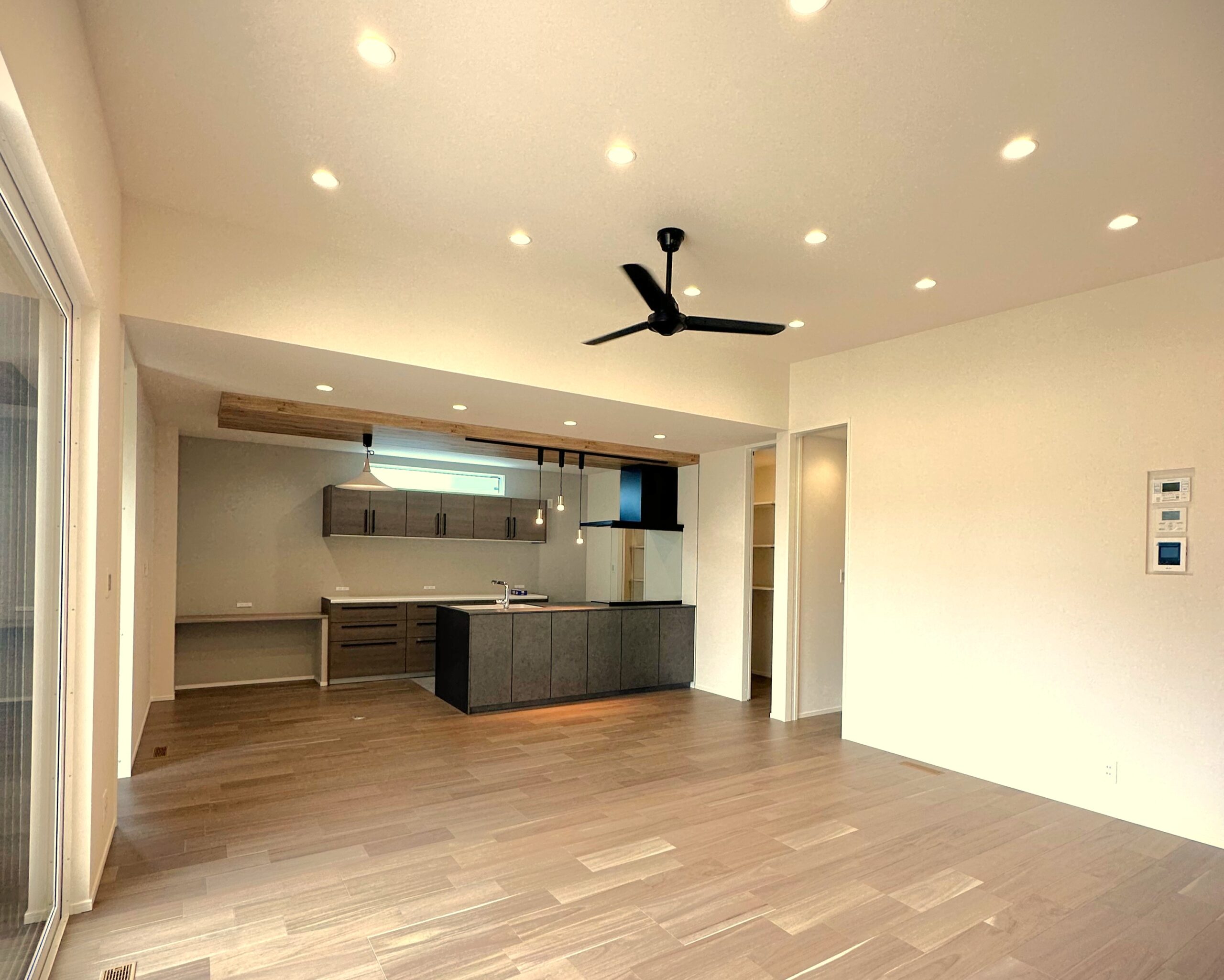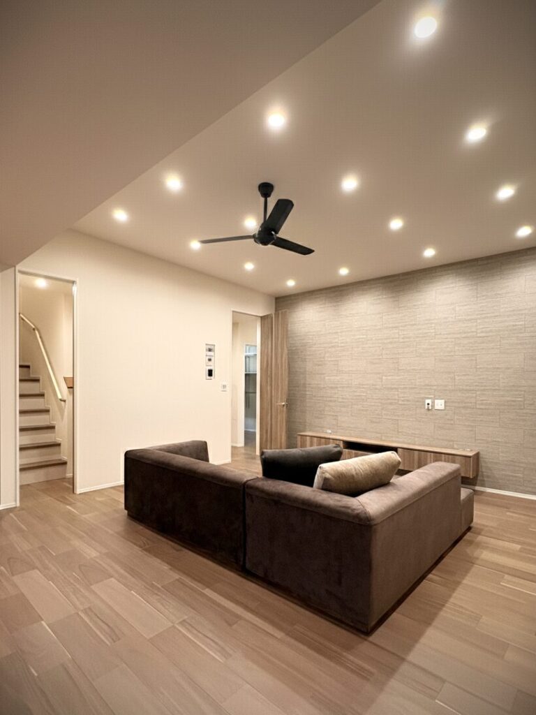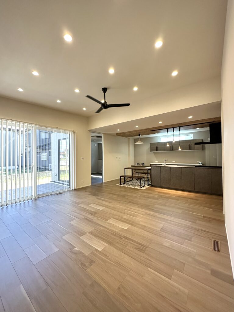 やわらかな光と木目の質感が調和するLDKは、家族が自然に集まり心地よい時間を育む空間。