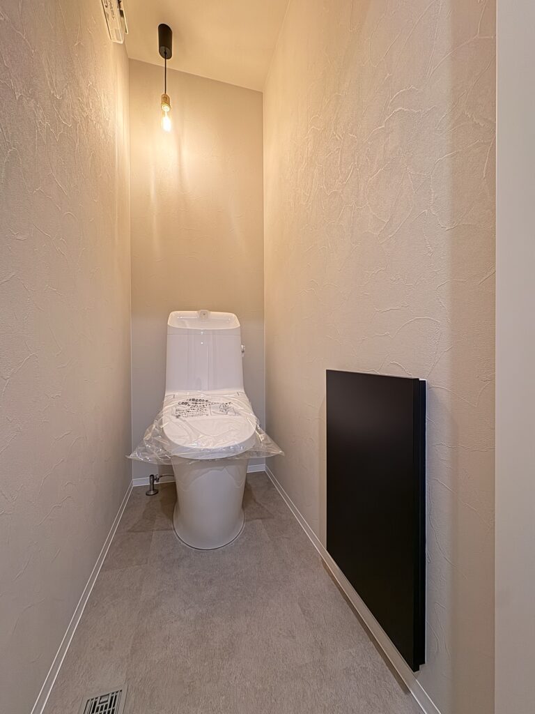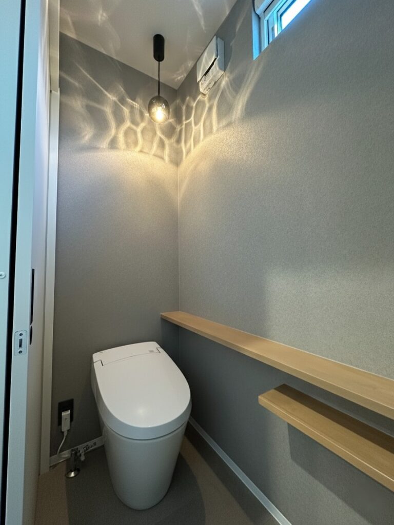 グレーのクロスと照明がマッチしたトイレ